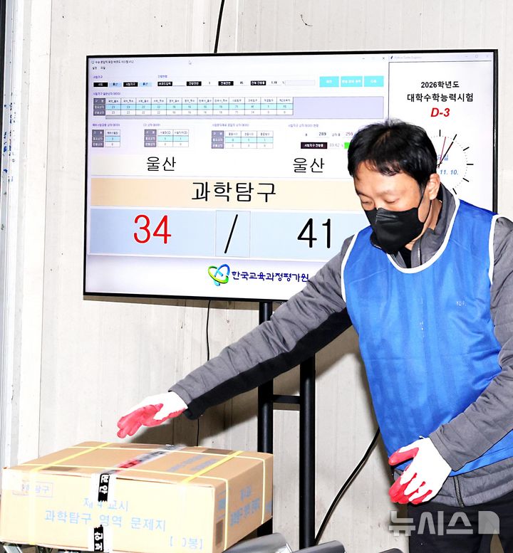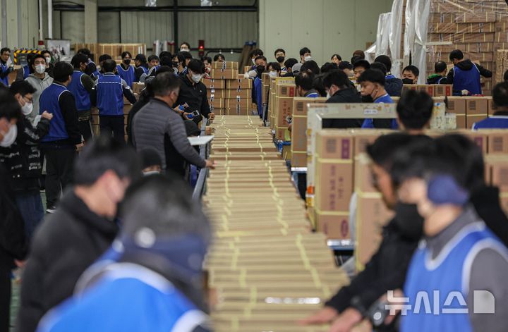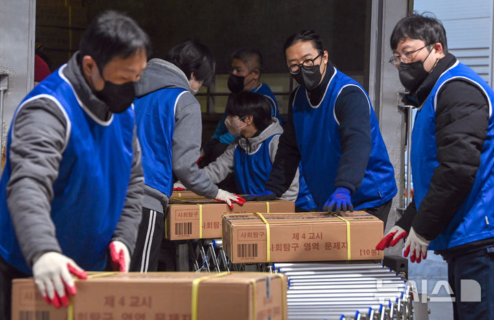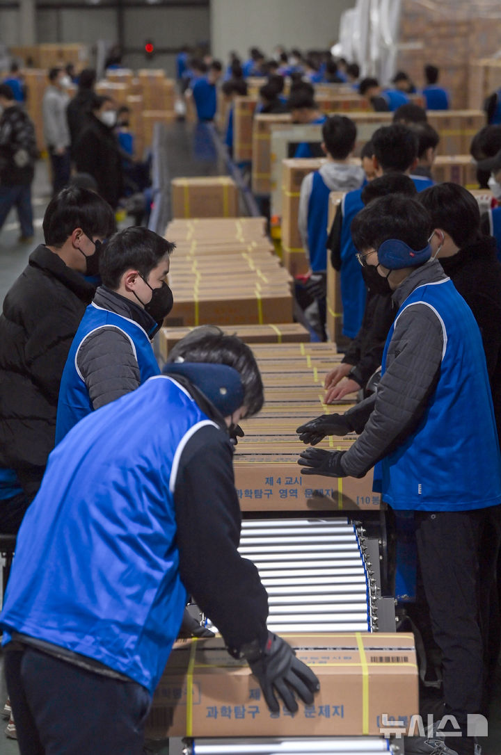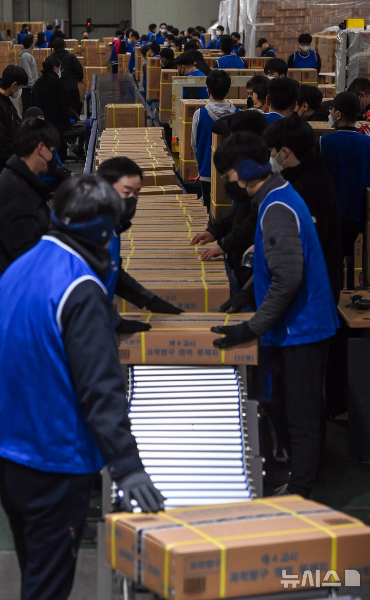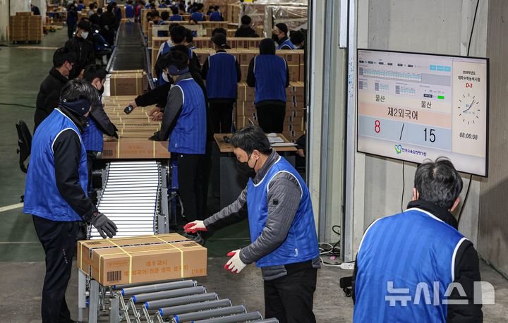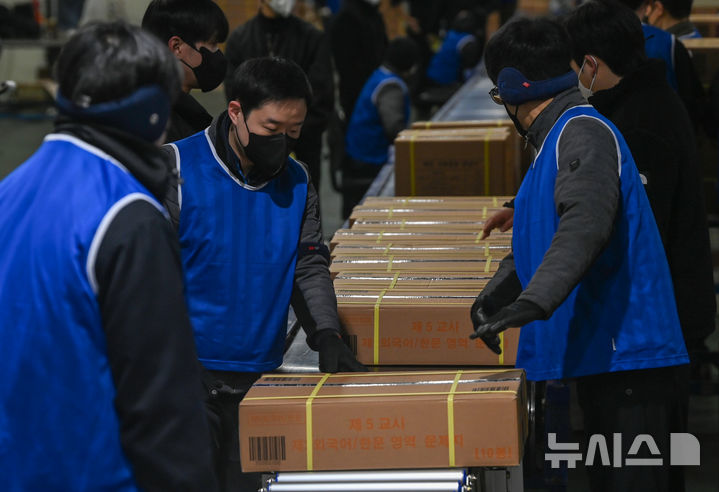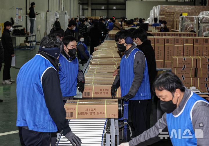 【NEWSIS】2026年度大学修学能力試験(修能、日本の大学入学共通テストに相当)まであと三日となった10日、世宗市内のある印刷工場で、修能問題用紙と解答用紙を全国の市・道教育庁に発送するため、車に積み込む関係者たち。写真=共同取材団