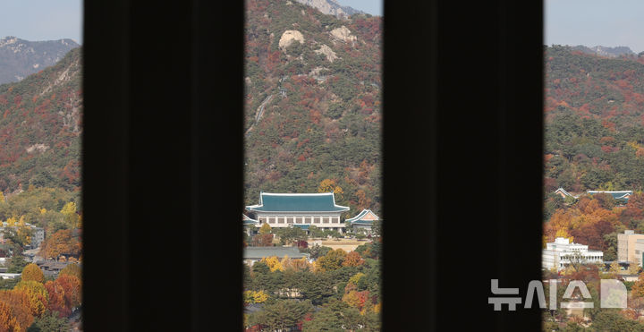 【NEWSIS】韓国大統領室が来月14日前後、ソウル市竜山にある大統領執務室等を青瓦台に移転することが伝えられた。写真は11日、ソウル市鍾路区から望む青瓦台の姿。深まった秋の風景を見せている。