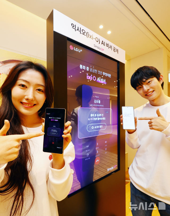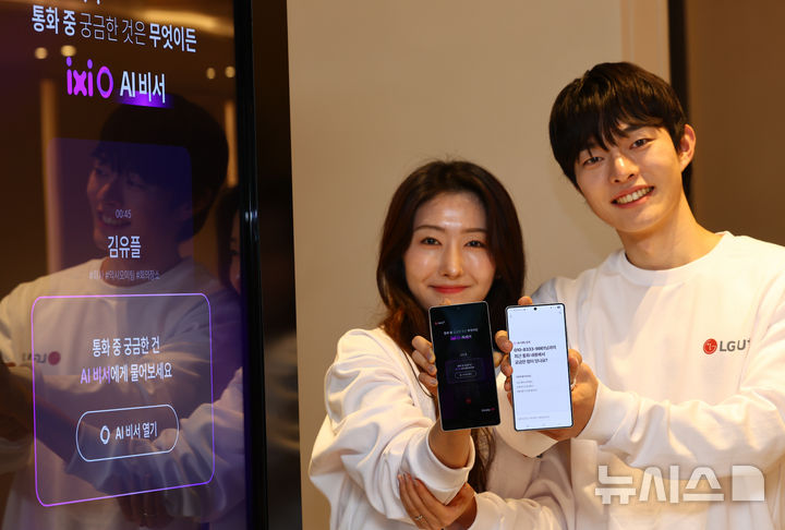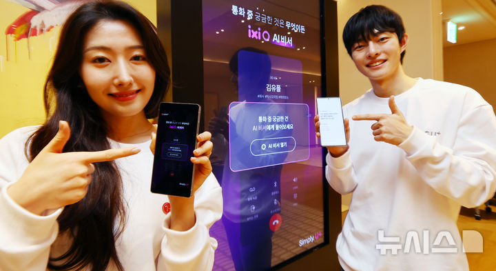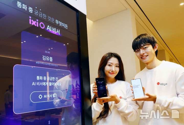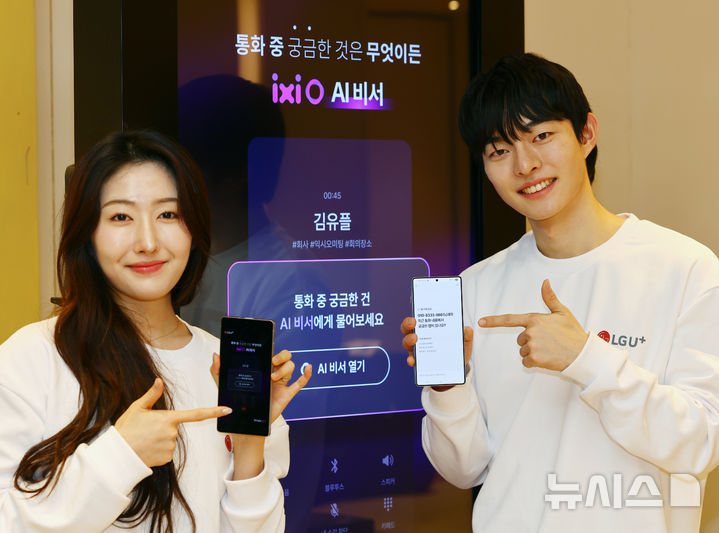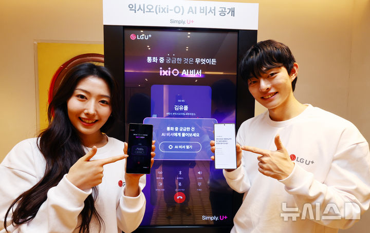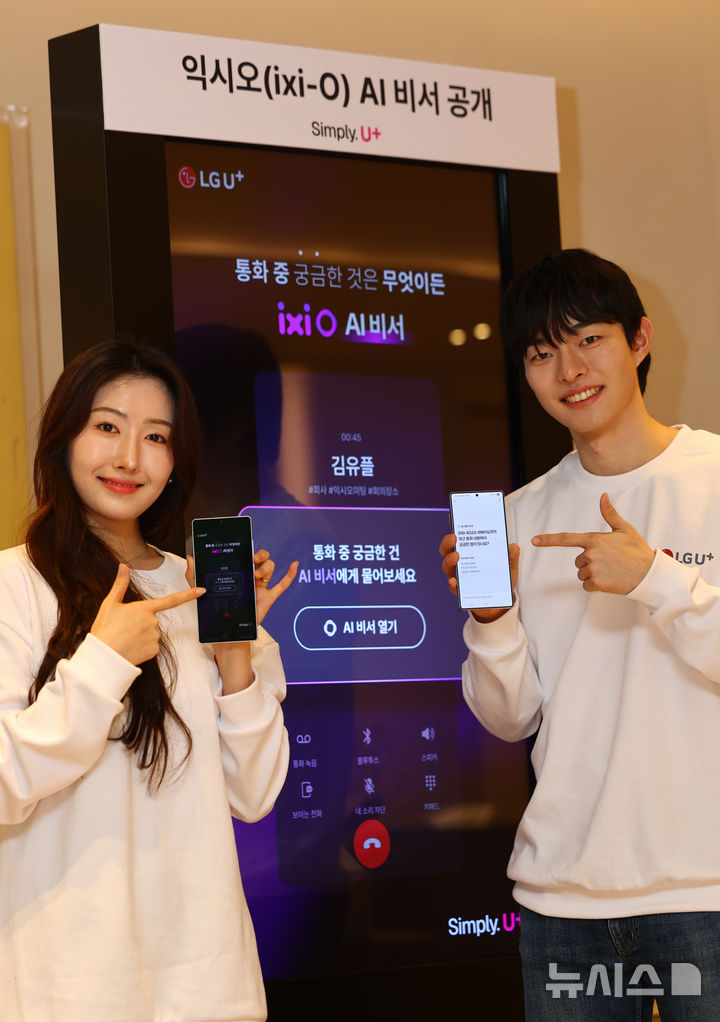 【NEWSIS】ソウル市鍾路区のCentropolisで13日、LG U+が「安心できるAI」をベースに、顧客の利便性を増進するサービス「イクシオ(ixi-O)AI秘書」を公開するイベントが開かれた。写真は、イクシオAI秘書を紹介するコンパニオンの様子。