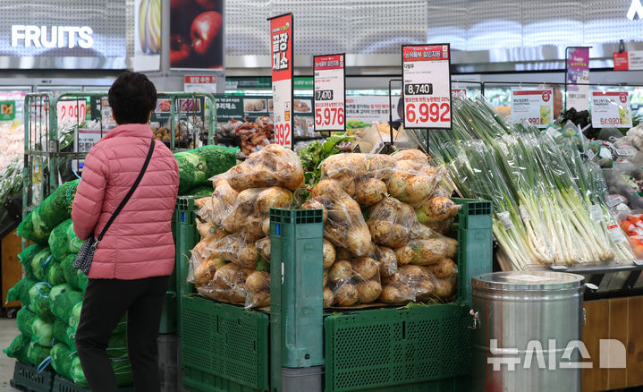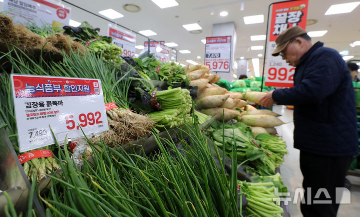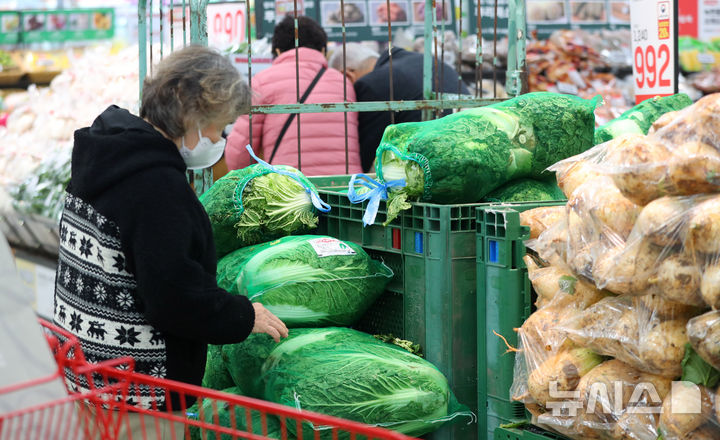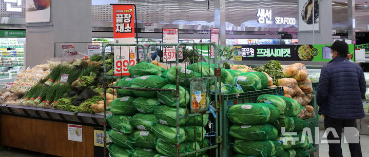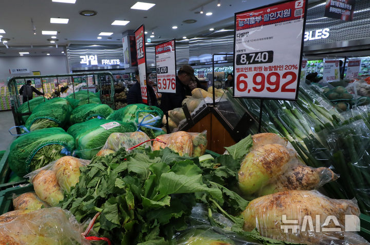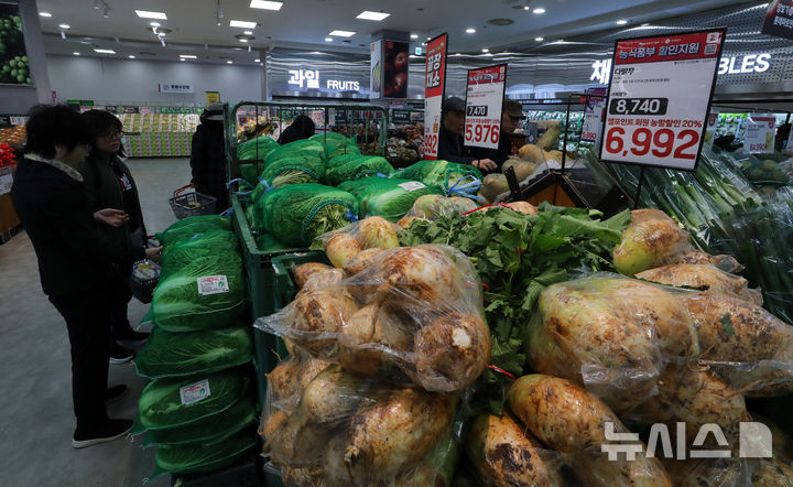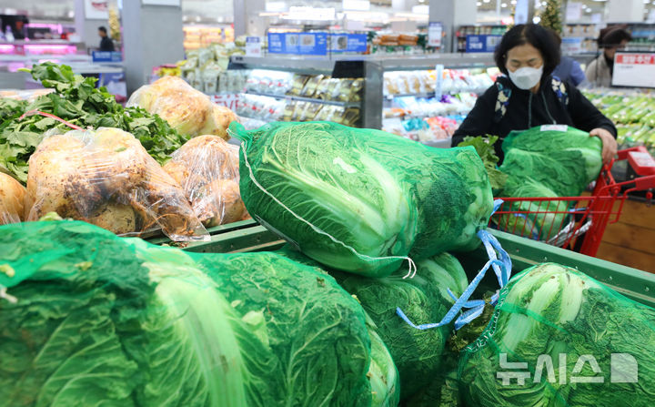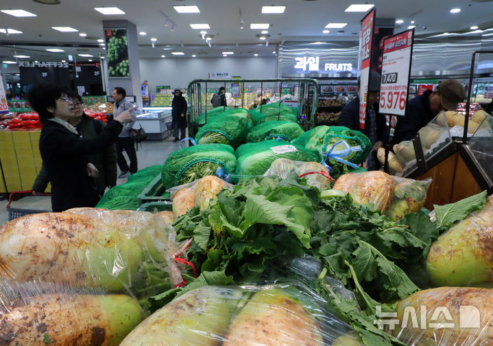 【NEWSIS】ソウル市中区の大手スーパー、ロッテマート・ソウル駅店で13日、店舗を訪れた市民がキムジャン(越冬用キムチの漬け込み)に必要な農産物を選んでいる様子。