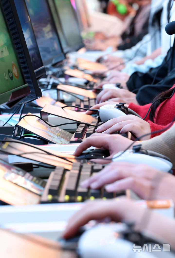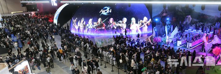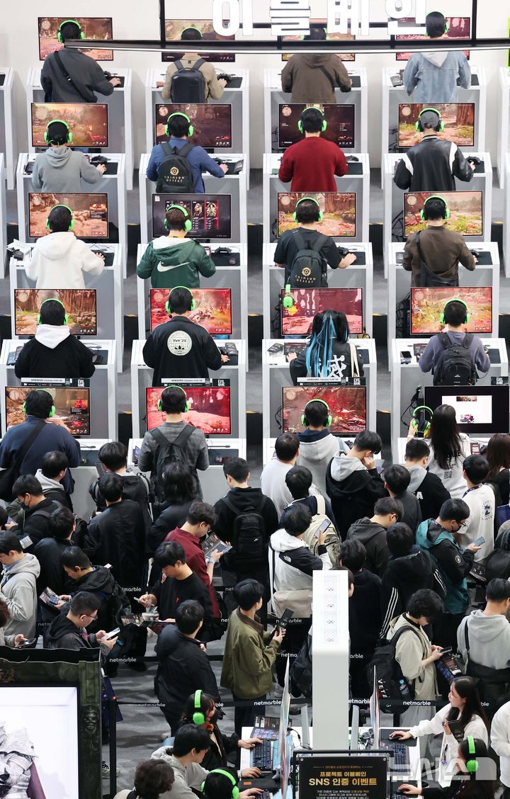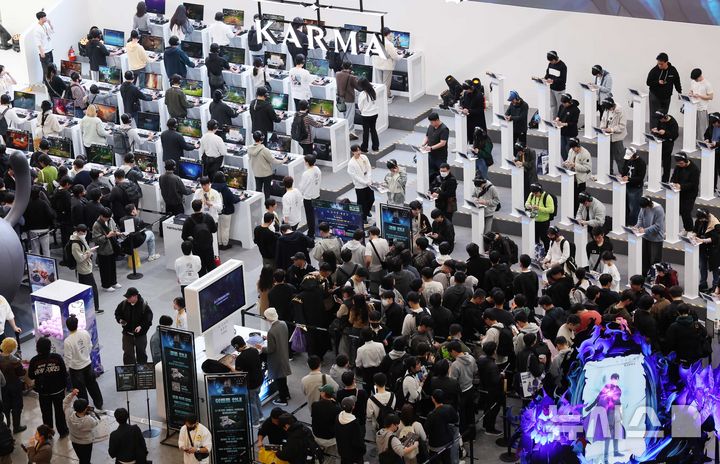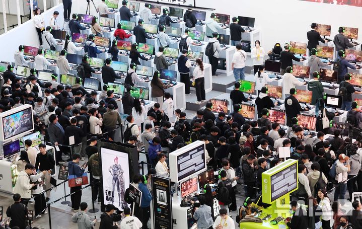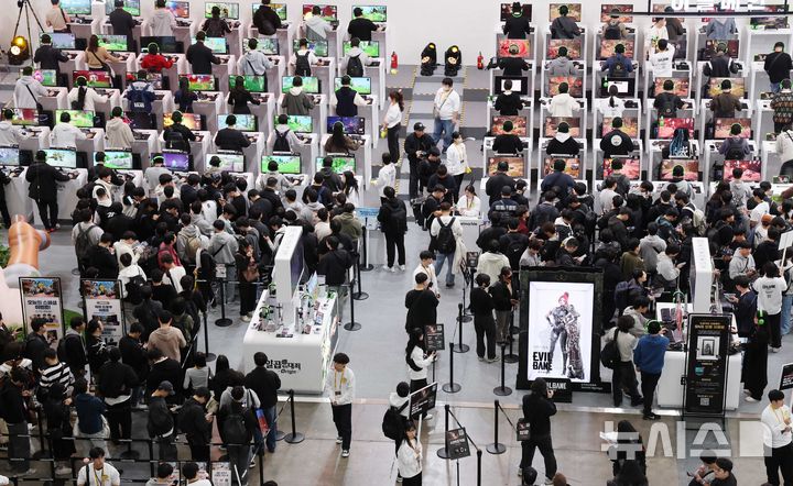【NEWSIS】グローバル・ゲーム展示会「G-STAR 2025」が開幕した13日、釜山市海雲台区のBEXCO第1展示場で、訪れた人々が新作ゲームを楽しんでいる様子。
