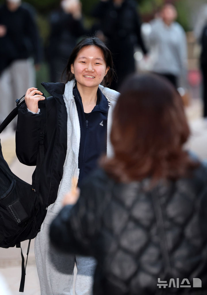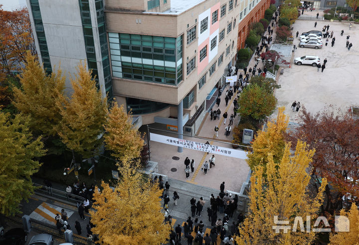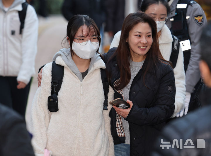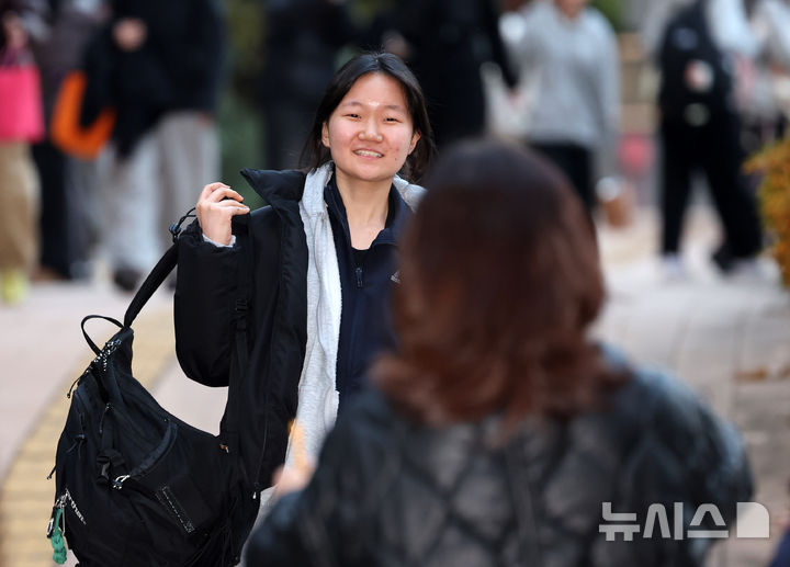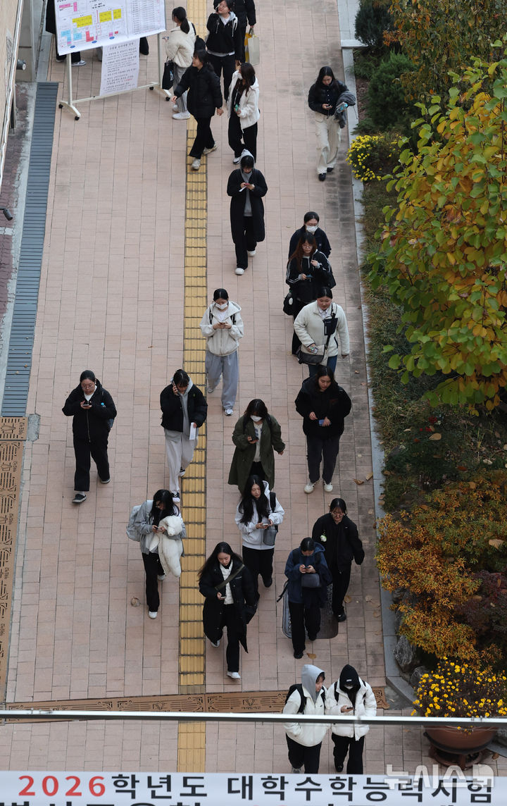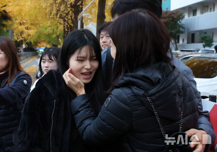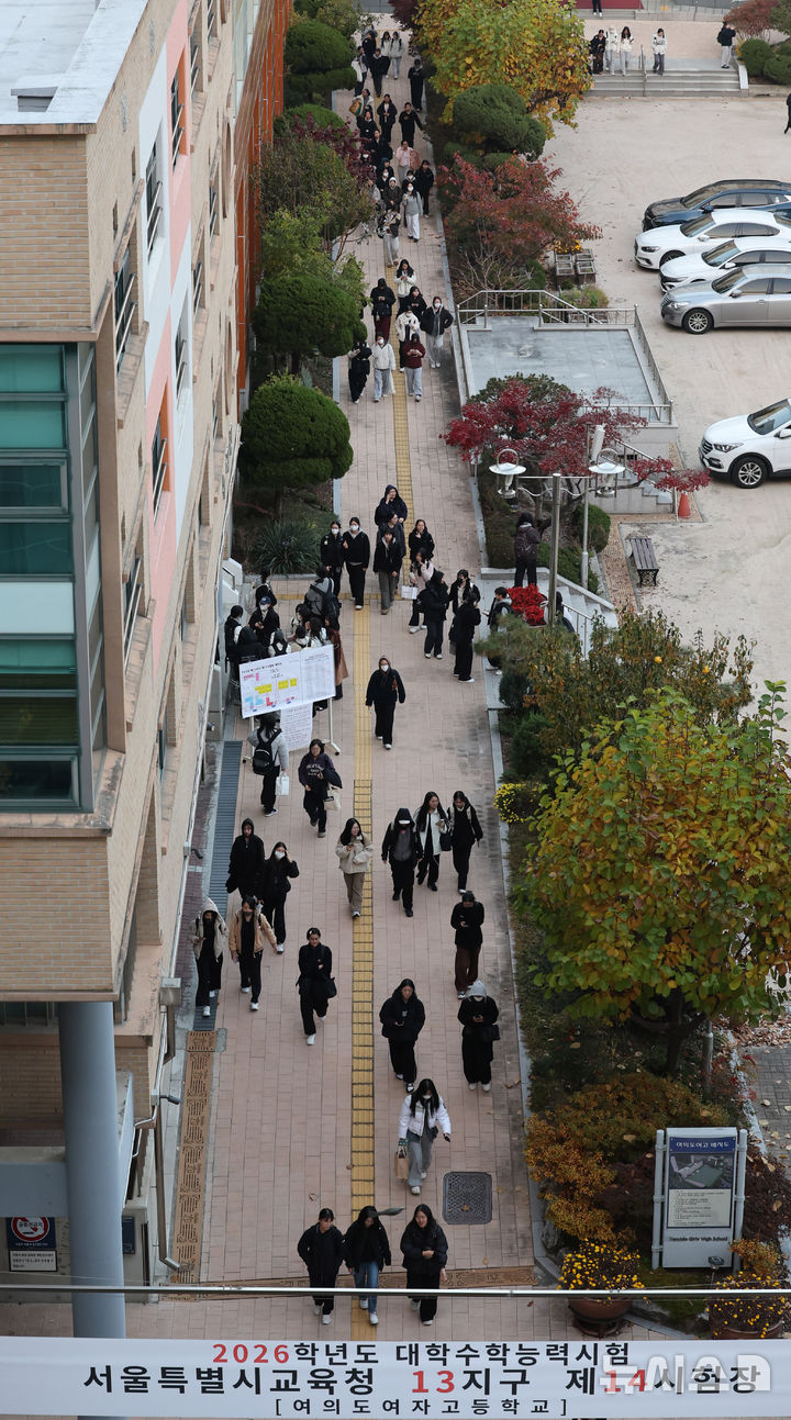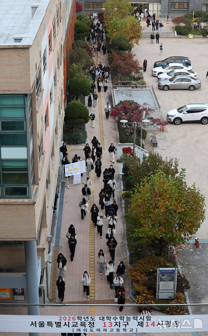 【NEWSIS】2026年度大学修学能力試験(修能。大学入学共通テストに相当)が行われた13日の午後、ソウル市永登浦区の汝矣島女子高で、試験を終えて試験場から出て来た受験生たちの様子。