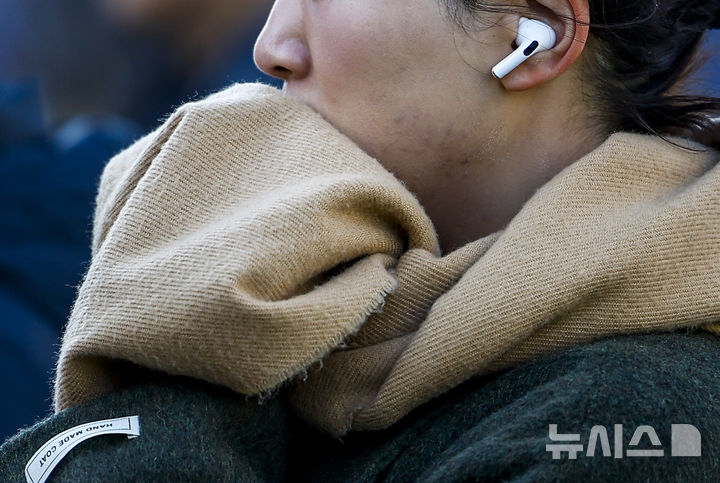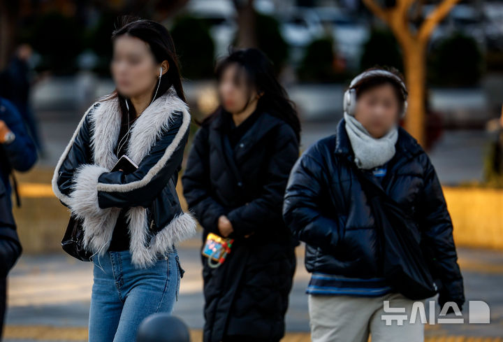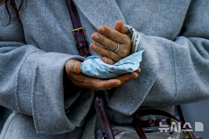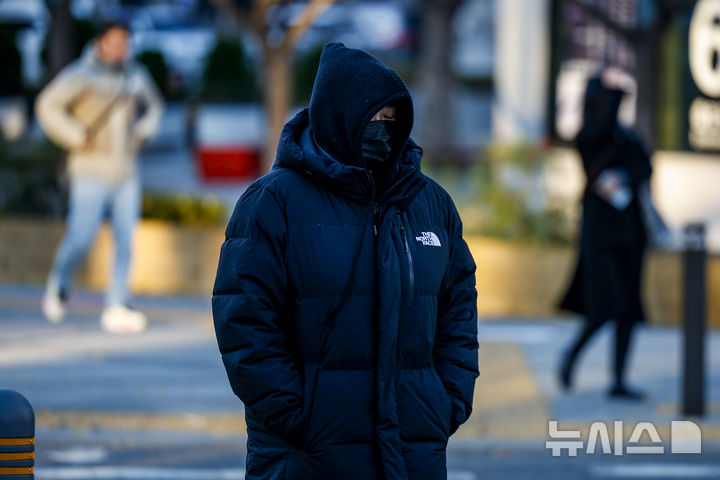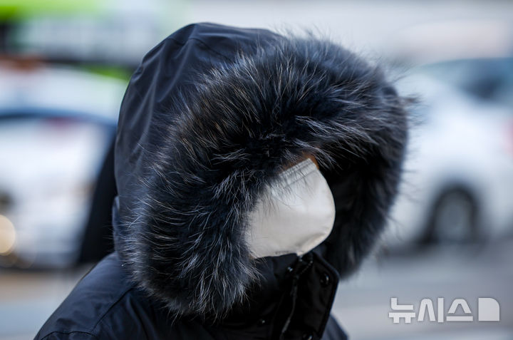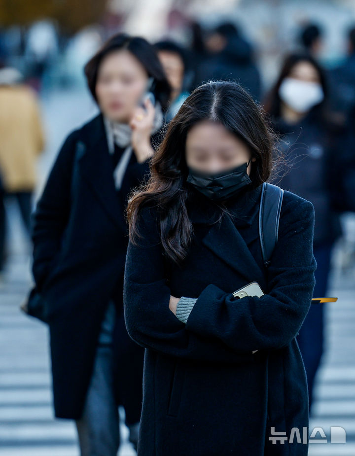 【NEWSIS】朝の気温が氷点下まで下がった18日、ソウル市鍾路区の光化門交差点で、カイロを手にしっかり握って道を急ぐ人。