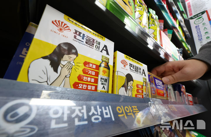 【NEWSIS】インフルエンザの流行期が例年より2カ月ほど早まるなど、感染拡大の勢いが強まっている20日、ソウル市内のコンビニに並んでいる風邪薬の様子。