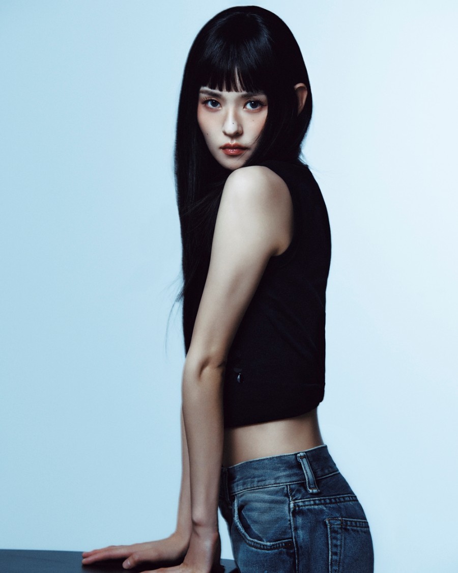 グラビアでキム・ユネは、白いレースの飾りが付いた衣装を着て清純な魅力を振りまいたほか、黒いショート丈トップスにデニムパンツを合わせてシックな魅力をアピールした。