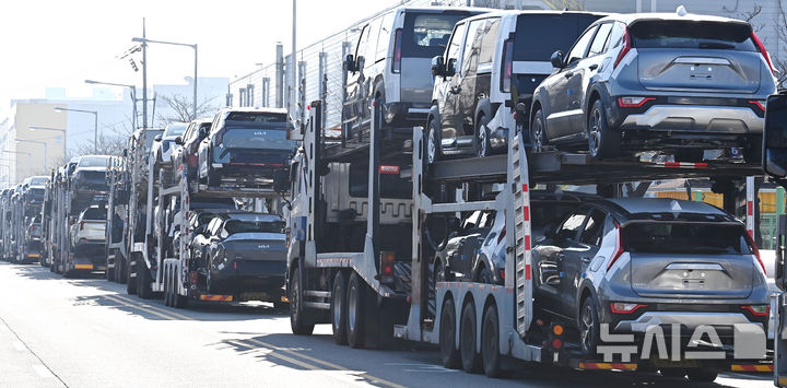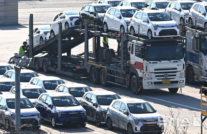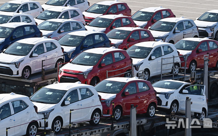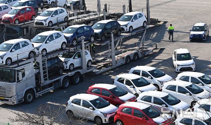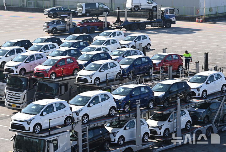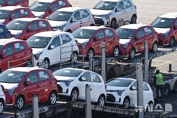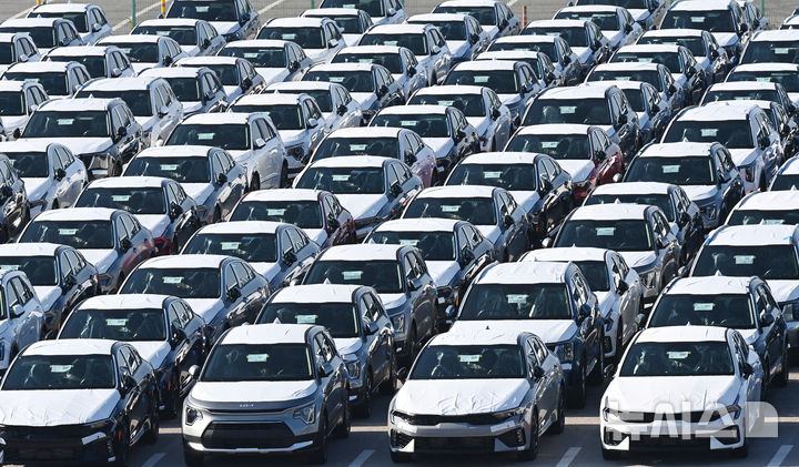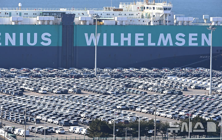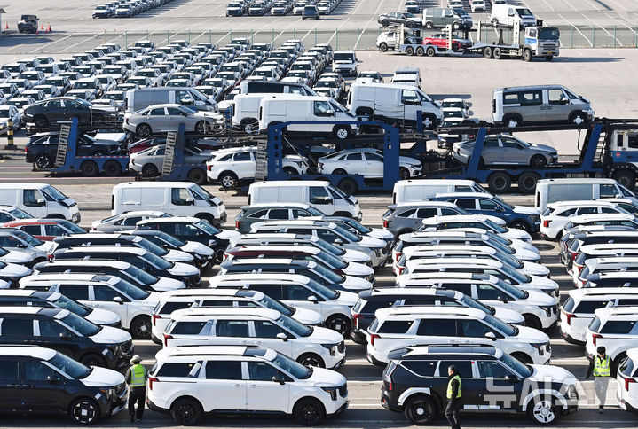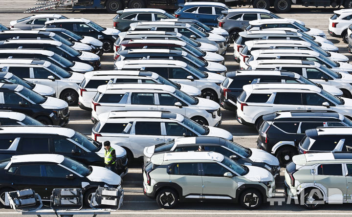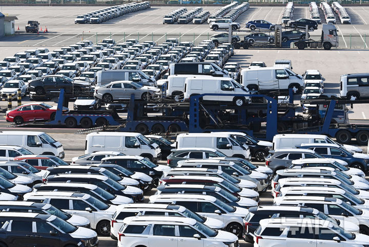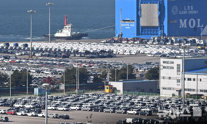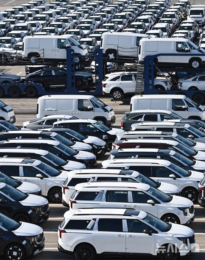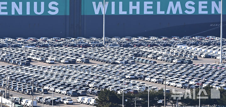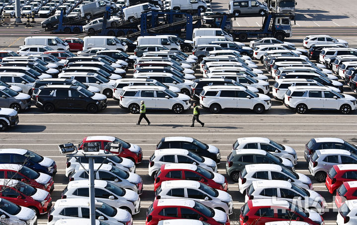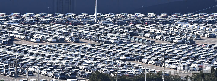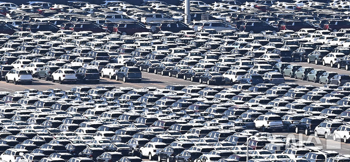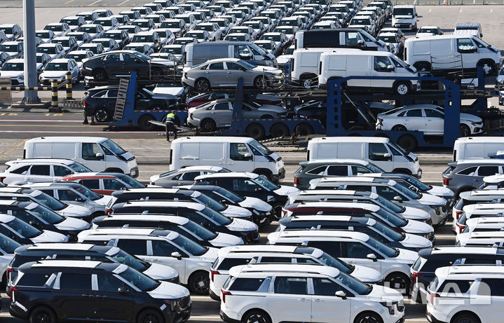 写真は1日、京畿道平沢市の自動車専用ふ頭に停めてある輸出用自動車の様子。