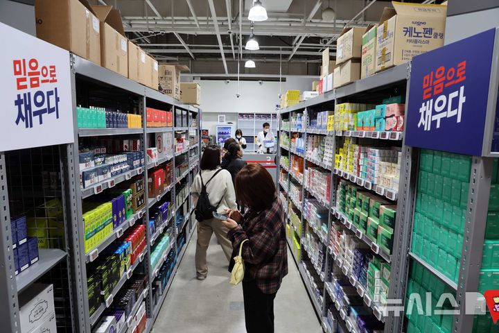 【NEWSIS】釜山市東莱区のメガマート東莱店に12日、釜山地域の流通業では初となる、およそ3000種類の一般医薬品および健康機能食品などを販売する倉庫型薬局の「東莱メガ薬局」がオープンした。