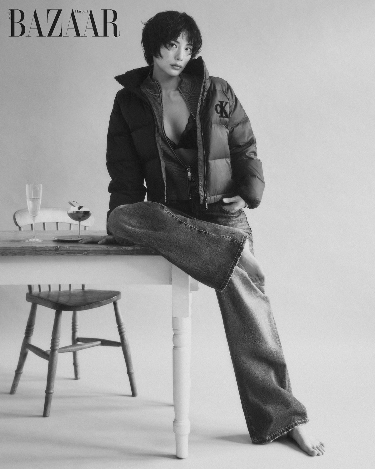 今回のグラビアはCalvin Kleinのホリデーシーズン・ベストと新商品を中心に、自然光の下で撮影された。ナナは力を抜いたポーズやすべすべの肌、Calvin Klein特有のミニマルなシルエットを完ぺきに生かし、心地よさから生まれる高級な美しさを盛り込んだ。
