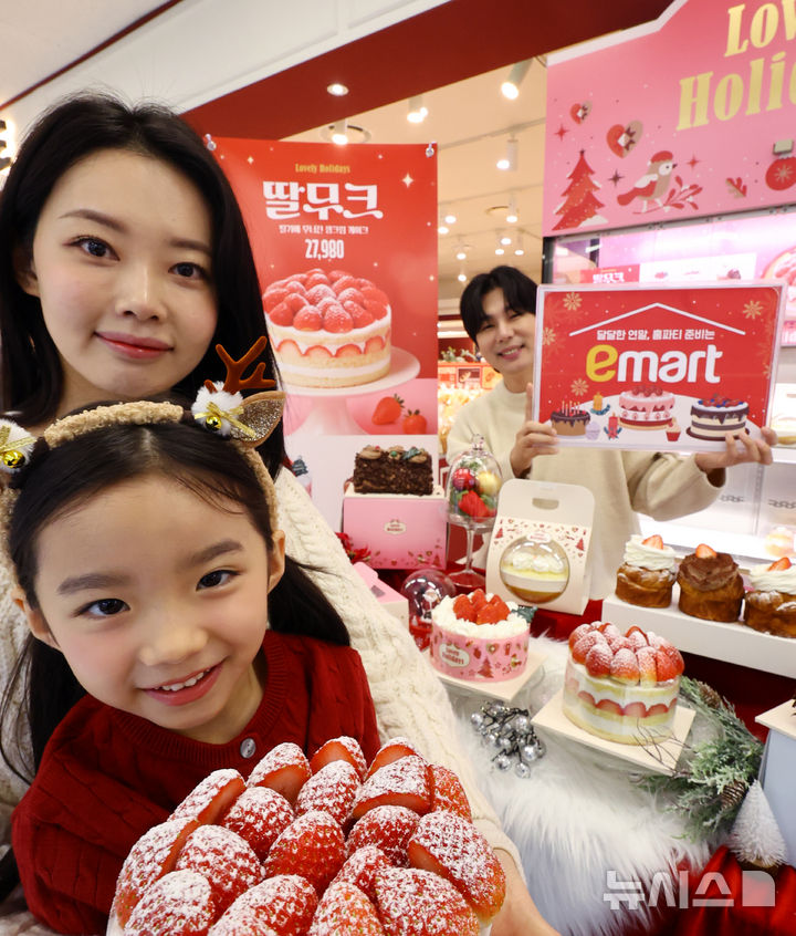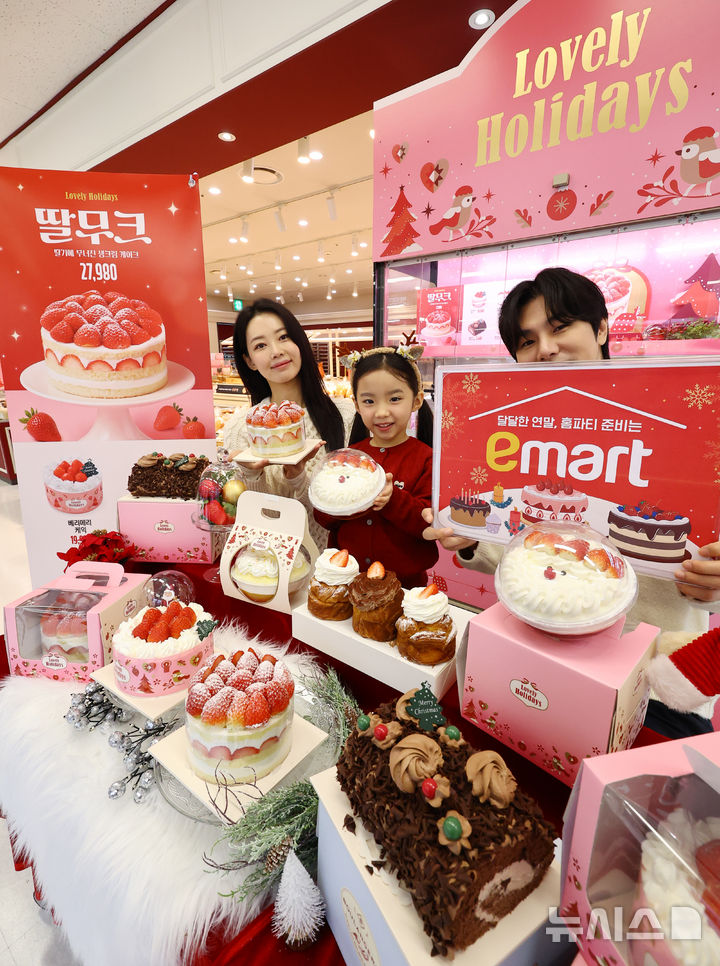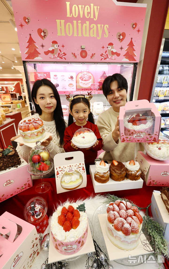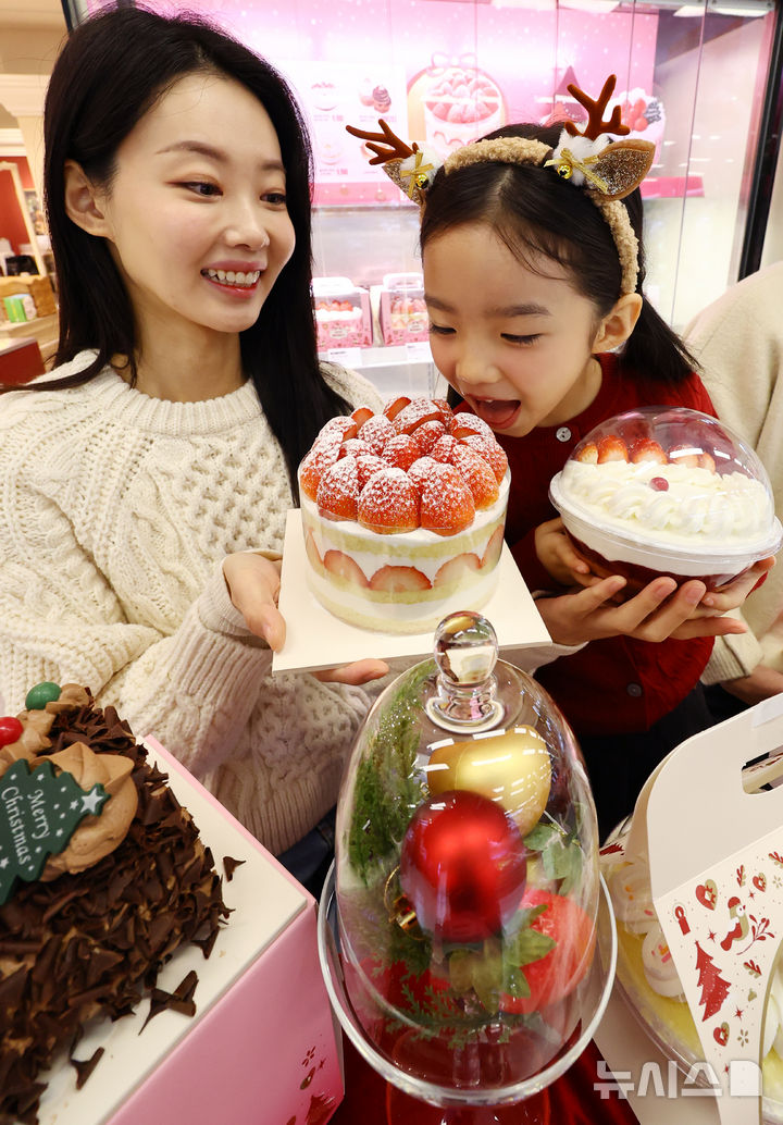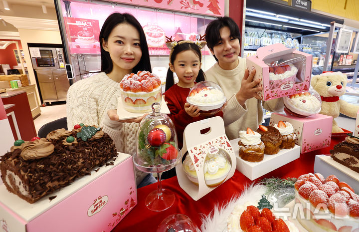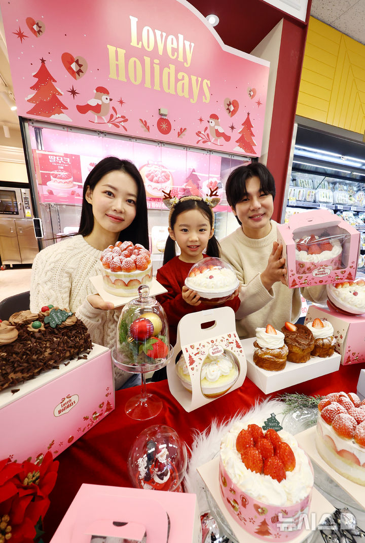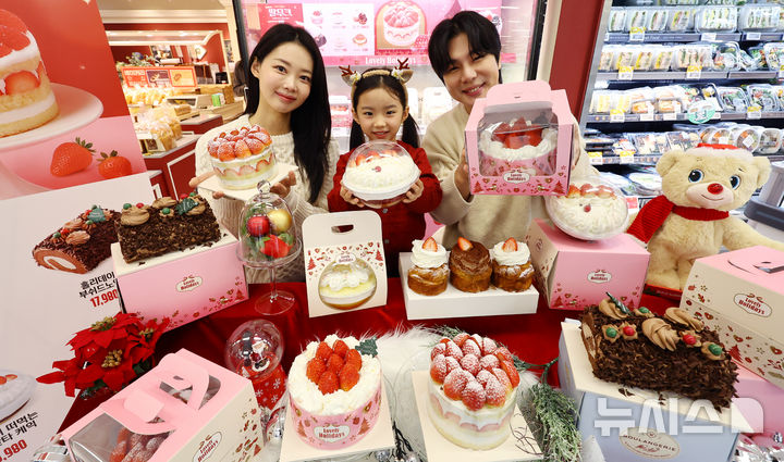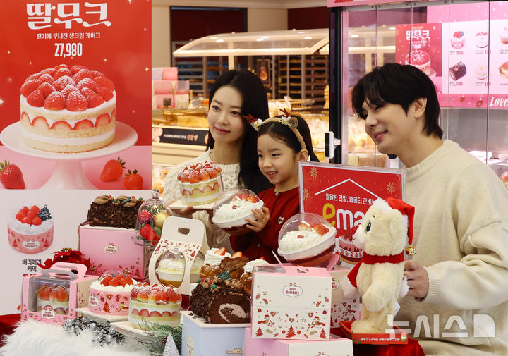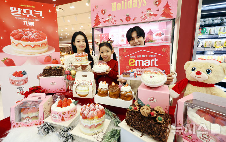 【NEWSIS】ソウル市内の大手スーパー「Eマート竜山店」地下2階ベーカリー売場で16日午前、ケーキの需要が増える年末に合わせて、新世界フードの「冬のいちごホールケーキ」が発売された。