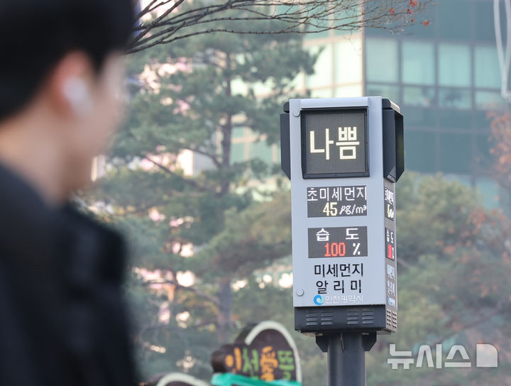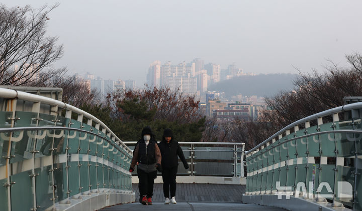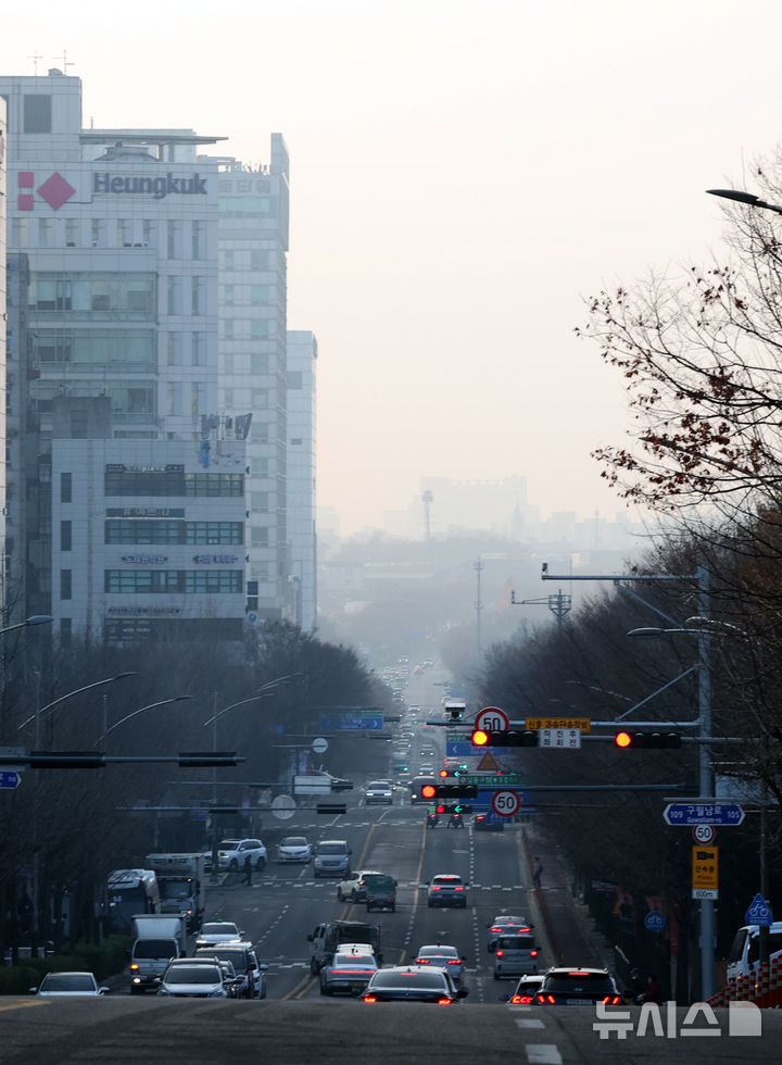 【NEWSIS】首都圏でPM2.5(微小粒子状物質)の濃度が上昇した17日午前、仁川市南洞区内から見た空はかすんでいた。