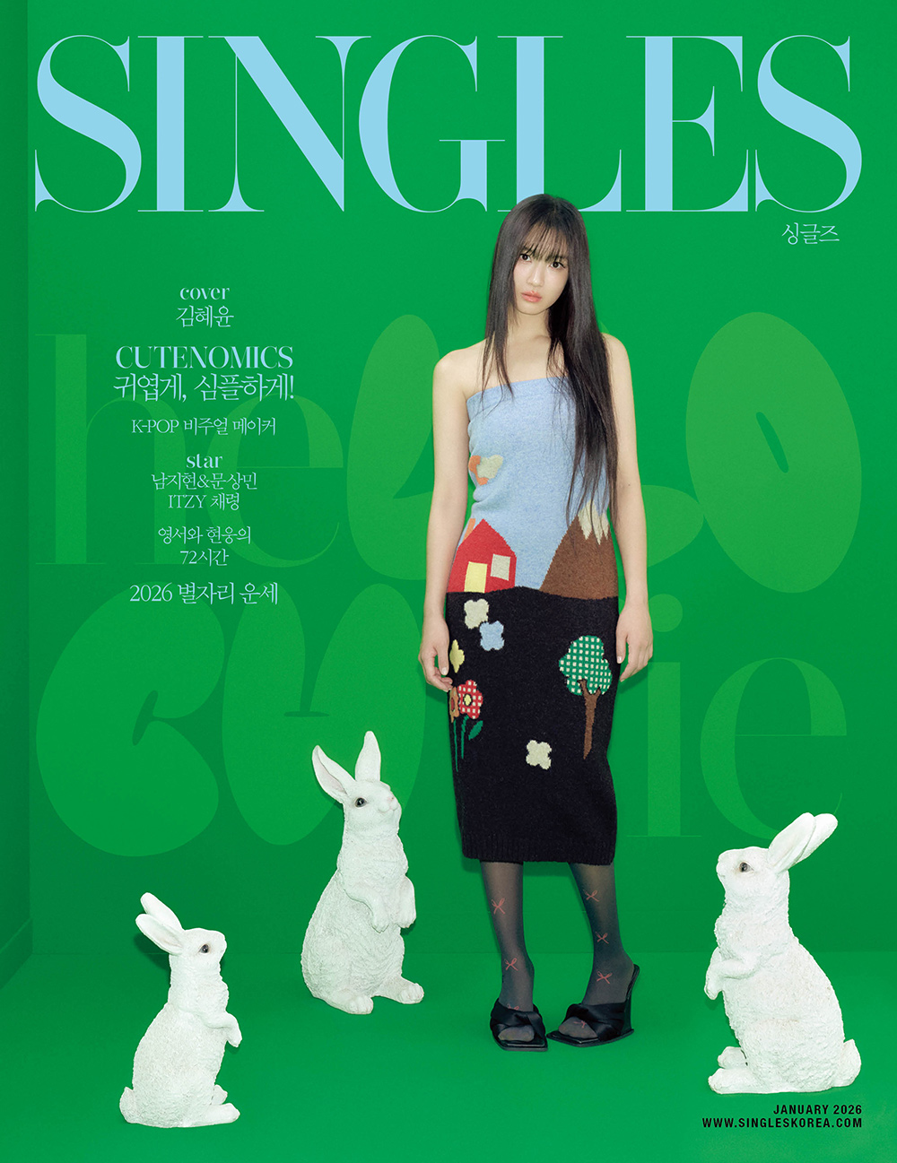 ファッション誌「Singles」2026年1月号の表紙に登場したキム・ヘユンは、弾けるような、突拍子もない魅力と共に幻想的な雰囲気を漂わせている。特に、2025年に演じたさまざまなキャラクターのように、グラビアでも予測不能な魅力を振りまいて視線を引き付けた。