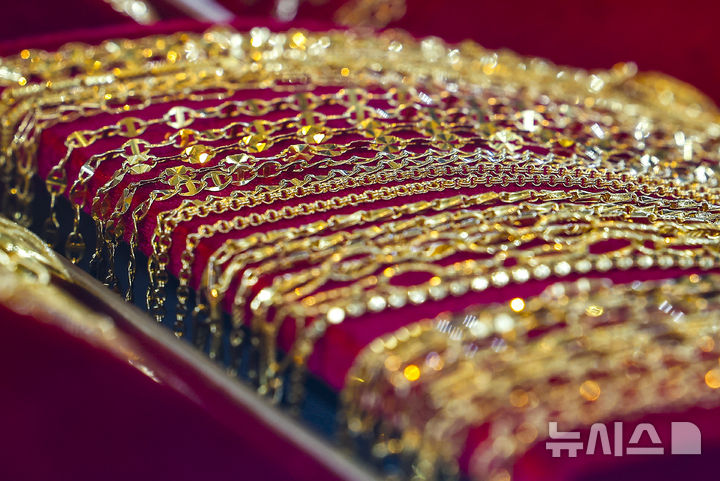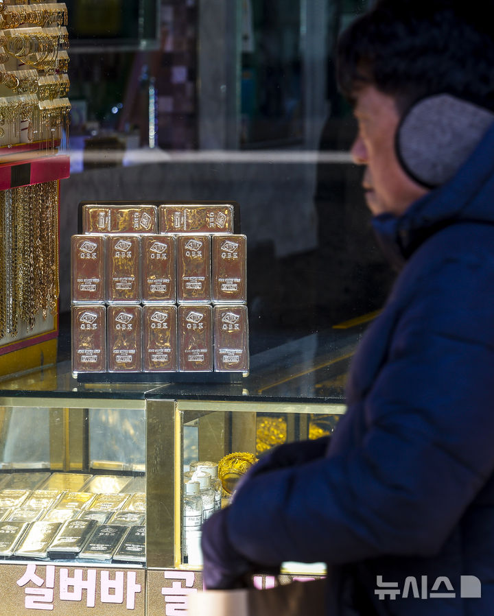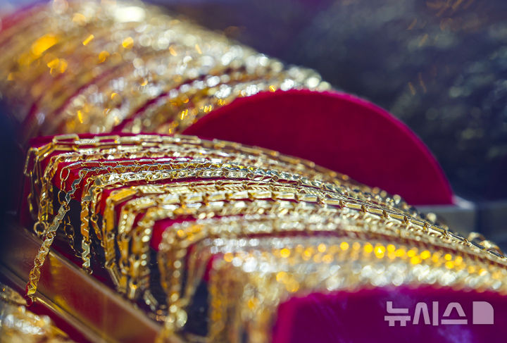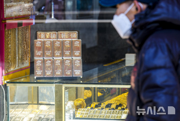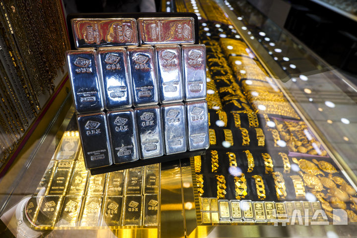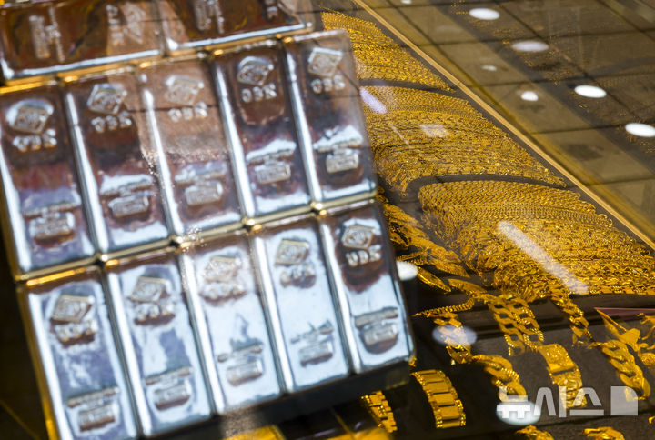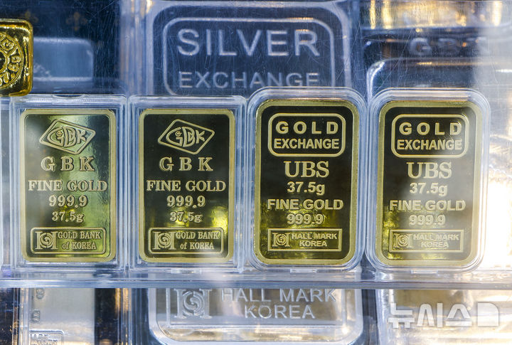 【NEWSIS】21日、ソウル市内の貴金属店に陳列されているゴールドバーの様子。