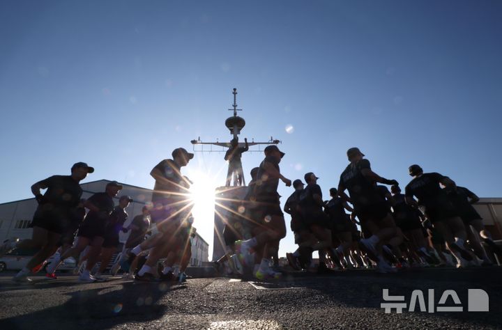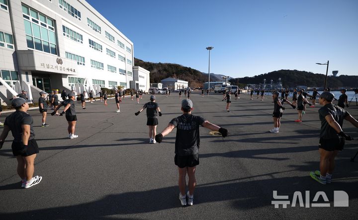 【NEWSIS】韓国海軍の特殊戦戦団海難救助戦隊(SSU)に所属する深海潜水士たちが22日、慶尚南道昌原市鎮海区の鎮海軍港で行われた2026年酷寒期耐寒訓練を実施した。