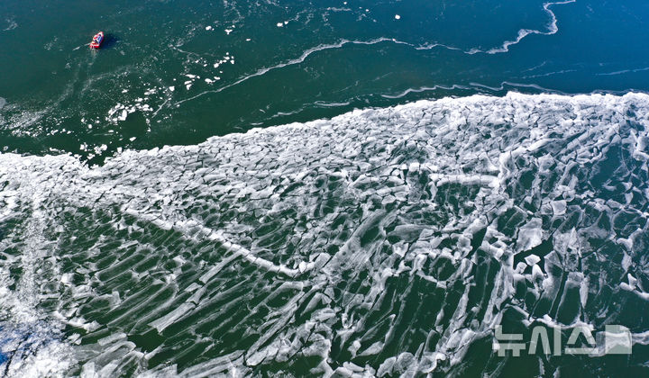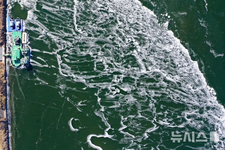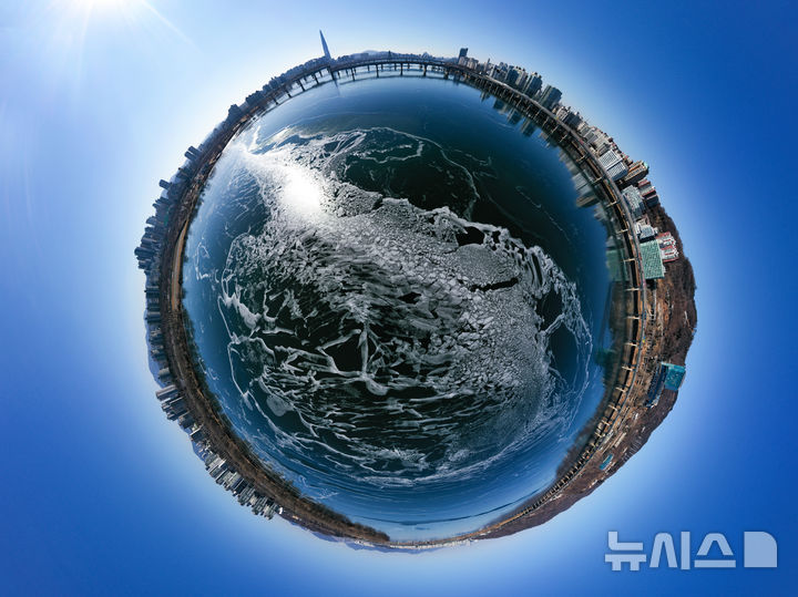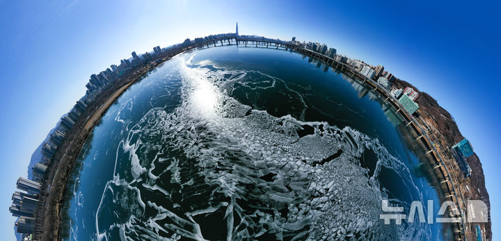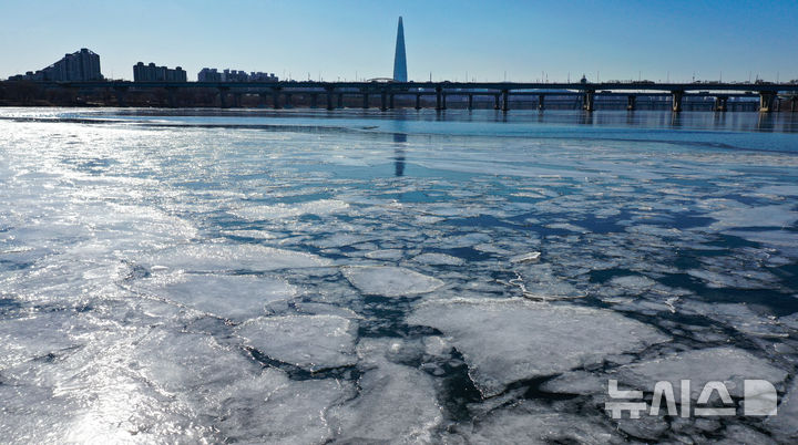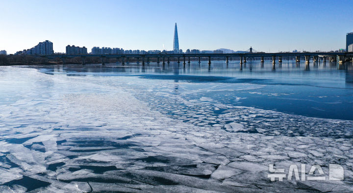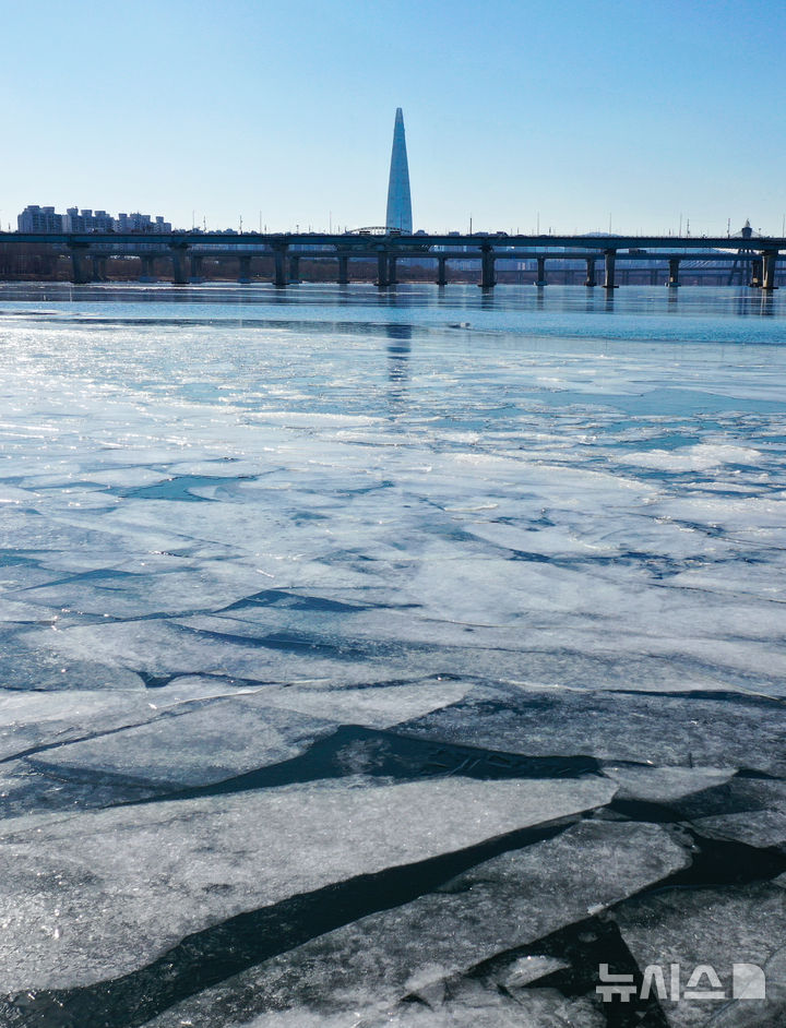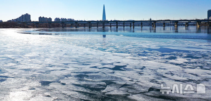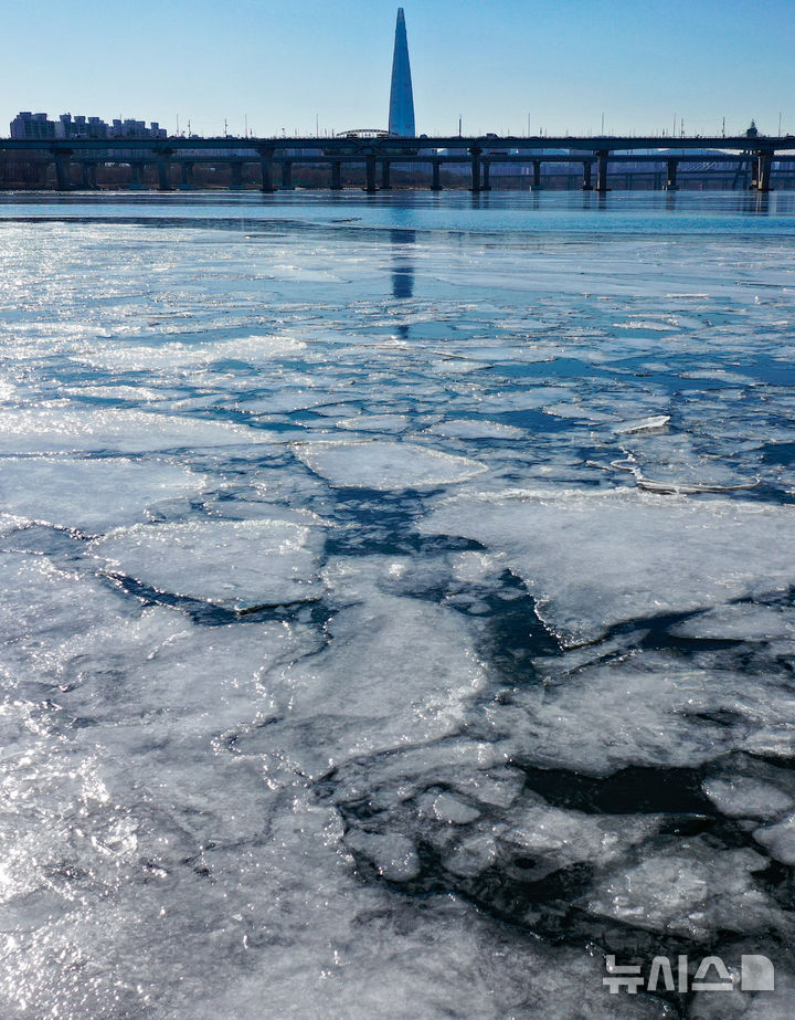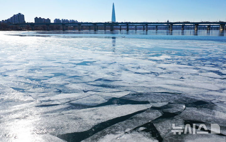 【NEWSIS】寒波が続いている22日、ソウル市江東区クァンナルの漢江の川べりでは、川の水が凍り付いていた。