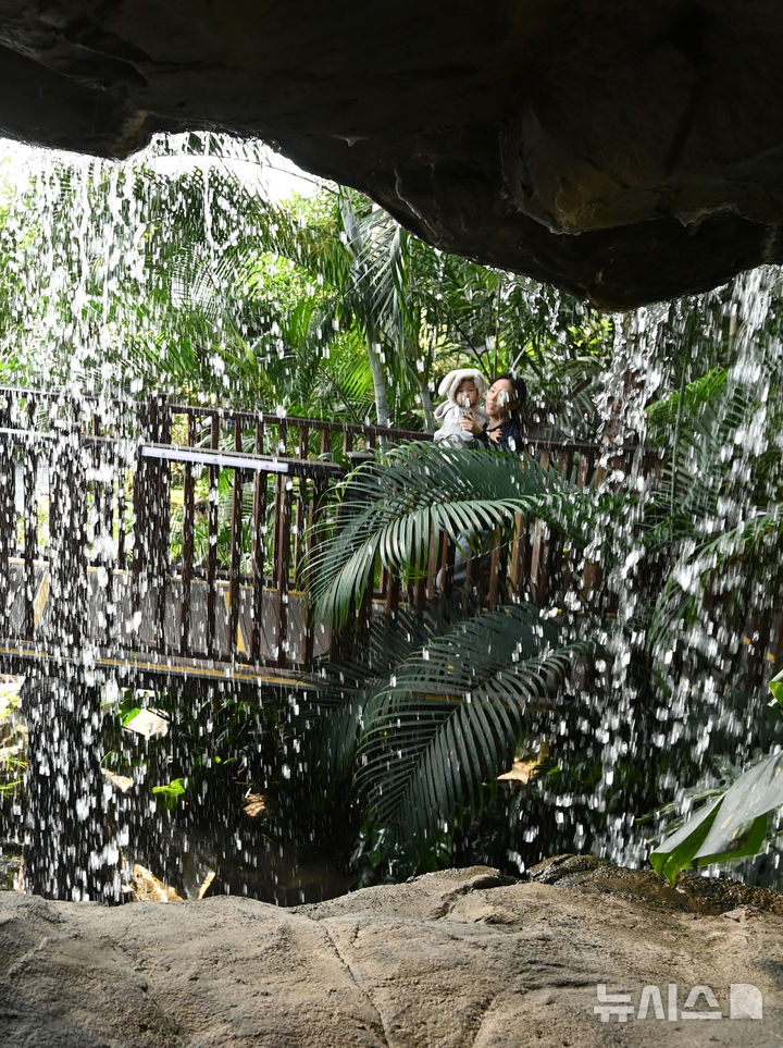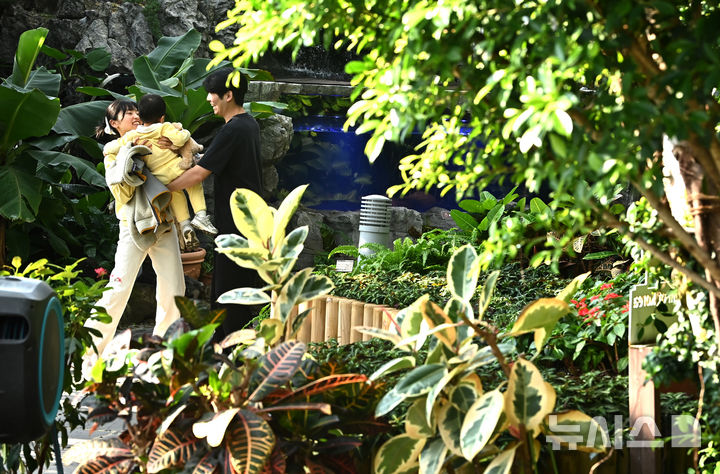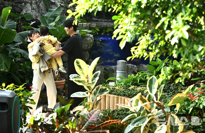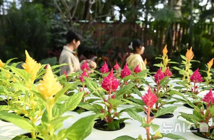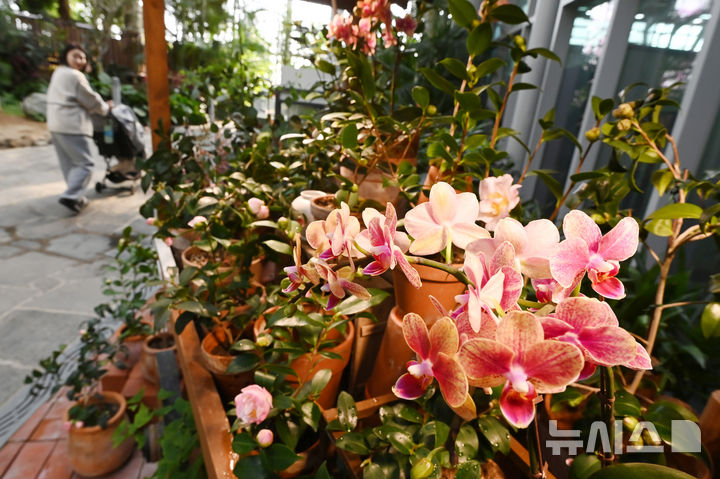 【NEWSIS】強い寒さが続いている23日、京畿道水原市の国立農業博物館を訪れた市民が、ほほ笑みながら植物園内の音質を見て回っている様子。韓国気象庁はこの日、忠清道およぶ南部地方の寒波特報を一部解除するなど、「冬将軍」の勢いがやや緩むだろうと予報した。