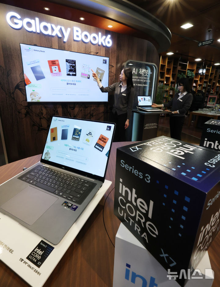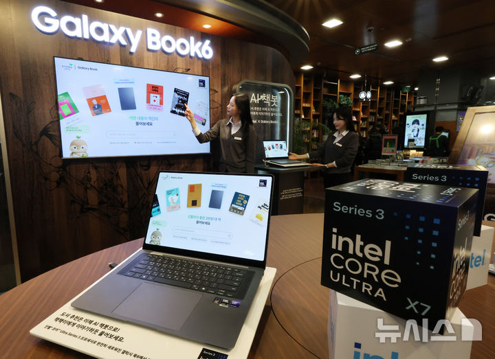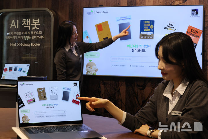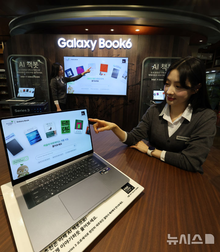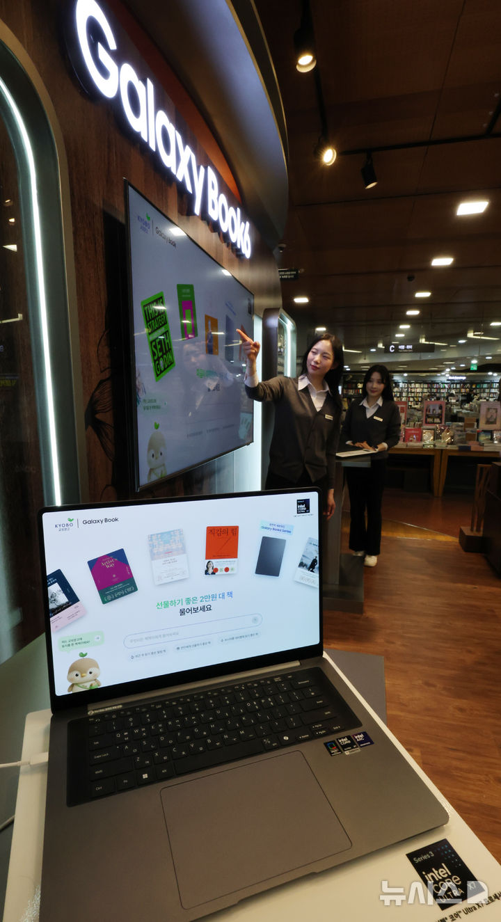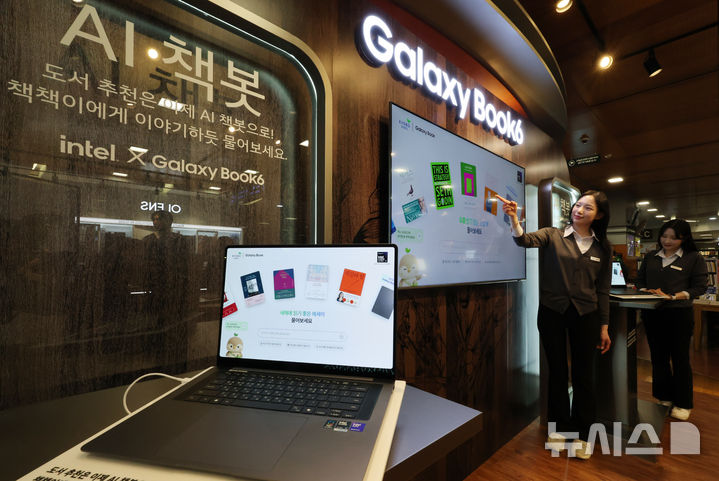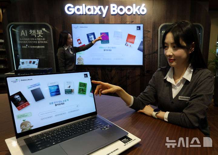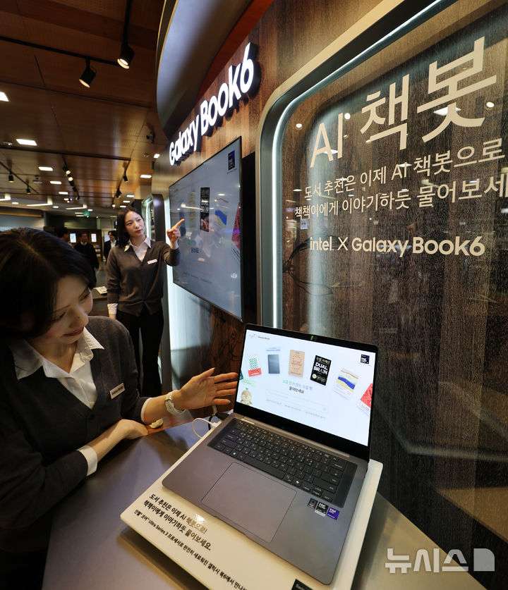 【NEWSIS】28日午後、「Galaxy Book6」シリーズの発売を記念するポップアップストアのオープンイベントがソウル市瑞草区の大手書店「教保文庫江南店」で開かれ、同時に教保文庫とコラボしたAI図書推薦サービス「AI書bot(チェッボット)」の公開が行われた。