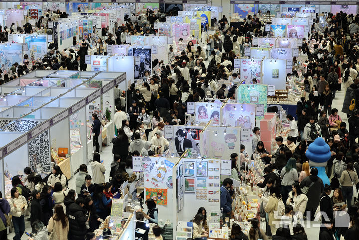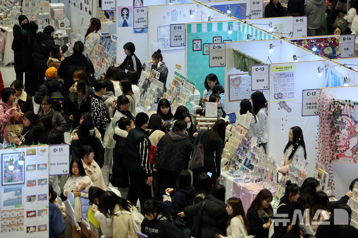 【NEWSIS】「Kイラストレーション・フェア・ソウル2026」が開かれた29日午後、ソウル市江南区のCOEXのイベント会場では、訪れた人々が参加各団体のブースを見て回っていた。