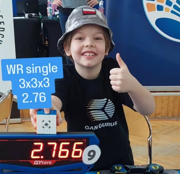 ポーランドの9歳の少年が、標準規格とされる「3×3×3」ルービックキューブをわずか2.76秒で完成させ、世界新記録を樹立した。