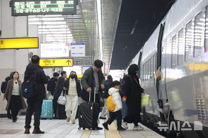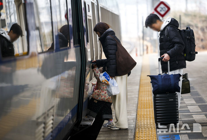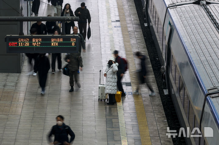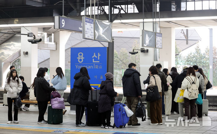 【NEWSIS】旧正月(今年は2月17日)の連休間近の13日、ソウル市竜山区のソウル駅で、列車に乗るため移動している帰省客の様子。