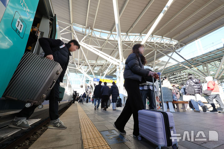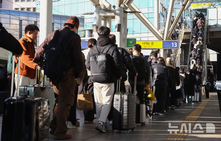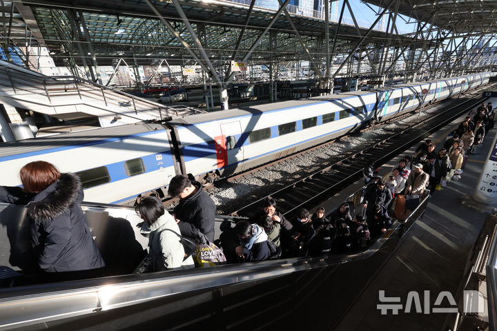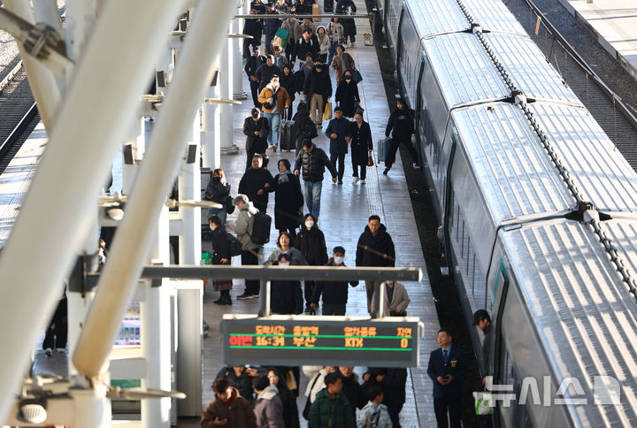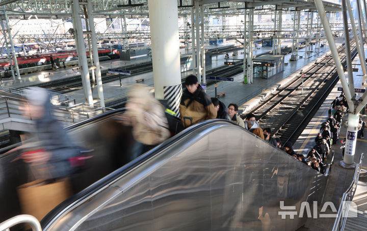 【NEWSIS】旧正月にあたる17日、帰京した人々が列車から降りて移動しているソウル駅の様子。