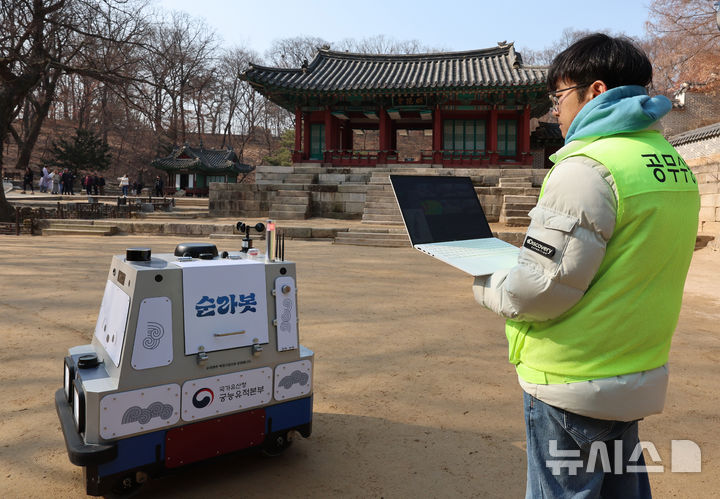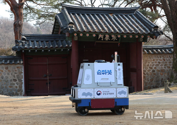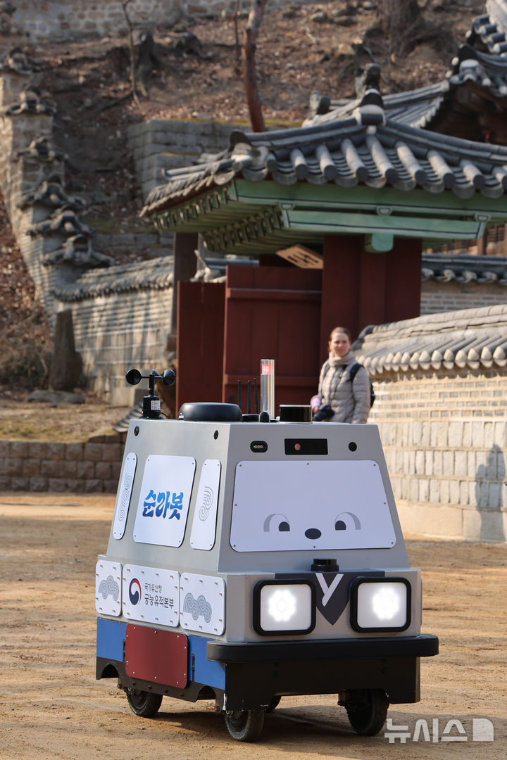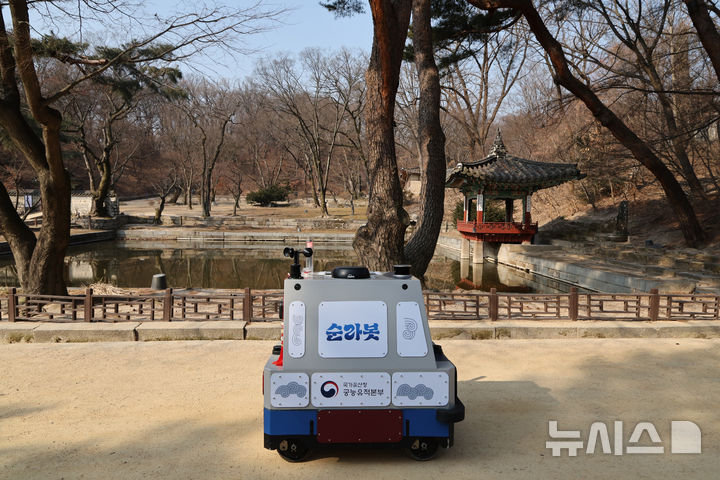 【NEWSIS】20日午前、ソウル市鍾路区の昌徳宮後苑で、パトロールのデモンストレーションを行っているパトロールロボット「巡羅ボット」。