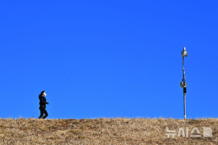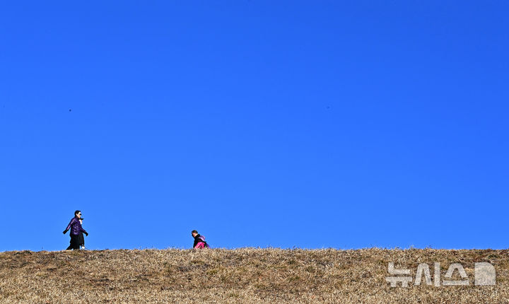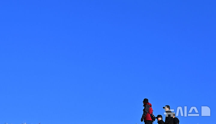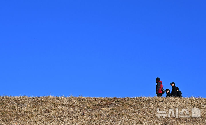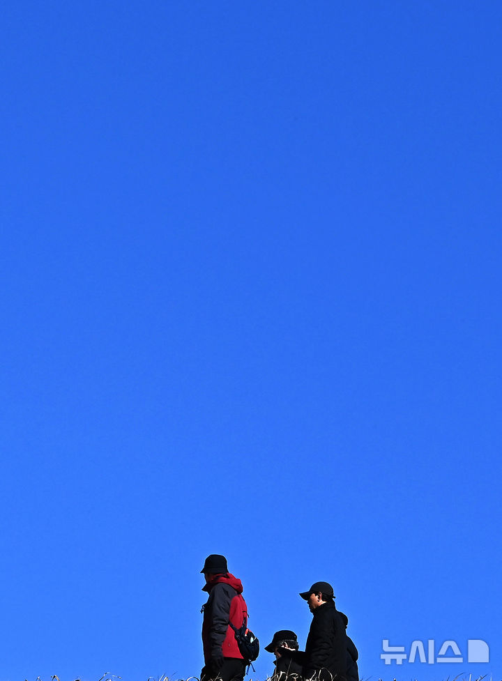【NEWSIS】きれいな青空が広がる天気となった25日、京畿道水原市長安区の光橋貯水池では、訪れた市民が温かい日差しを浴びつつ散策していた。