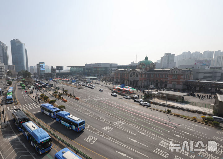 【NEWSIS】ソウル地域のPM10およびPM2.5濃度が「悪い」の水準を示した26日午後、ソウル市中区のソウル路7017から望むソウルNタワーは、白くかすんで見えた。