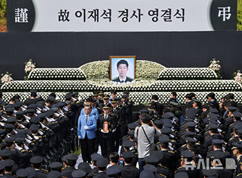 同僚たちと最後のあいさつを交わす故イ・ジェソク警査