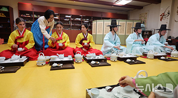 韓国の伝統文化「茶礼」を体験する外国人留学生たち /仁川