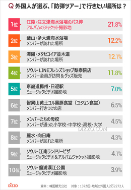 来韓外国人の新トレンド「防弾ツアー」、人気スポット1位は?