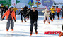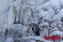 寒波で凍り付いた人工の滝