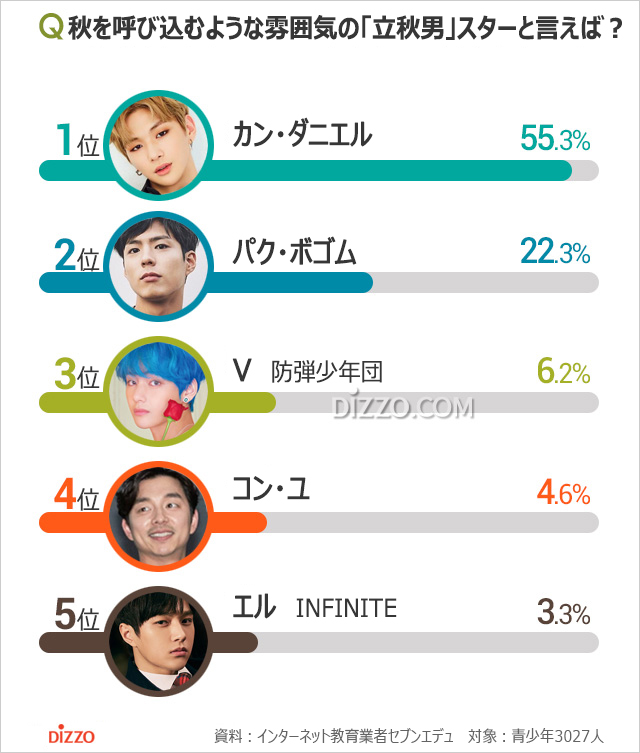 秋を呼び込むような雰囲気のある「立秋男」スター1位に元Wanna Oneのカン・ダニエルが選ばれた。夏が過ぎ、秋に差し掛かっていることを知らせる「立秋」を迎え、青少年を対象に、秋らしい雰囲気が感じられるスターを尋ねる、異色のアンケートが実施された。