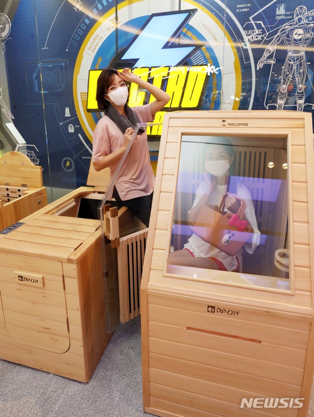 京畿道河南市の大手スーパー「Eマート・エレクトロマート慰礼店」で27日、「ホームサウナ」と「半身浴機」の紹介イベントが開かれた。Eマートは旧正月の名節を前に、コロナによってサウナやスパに出かけるのが難しいことから、自宅でも楽しめる「ホームサウナ」関連製品を披露した。