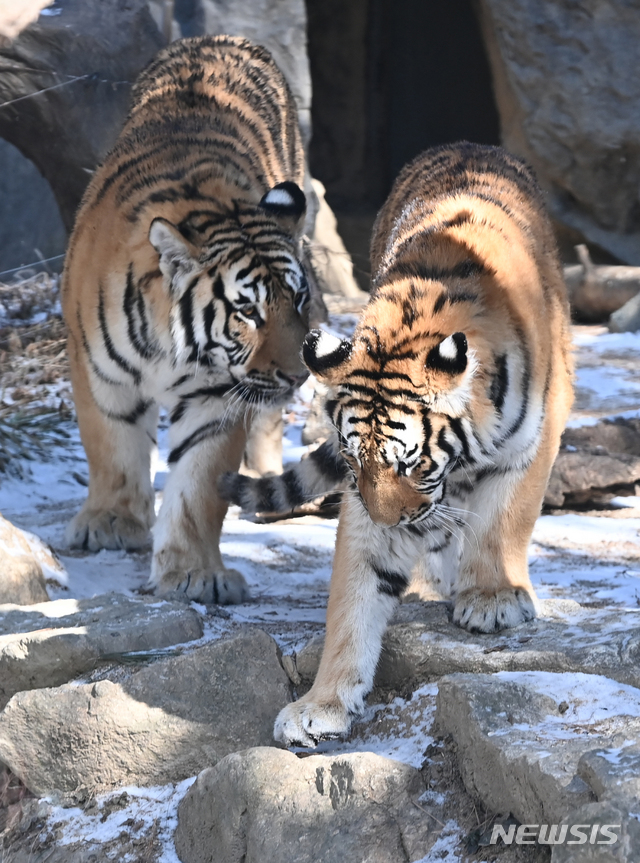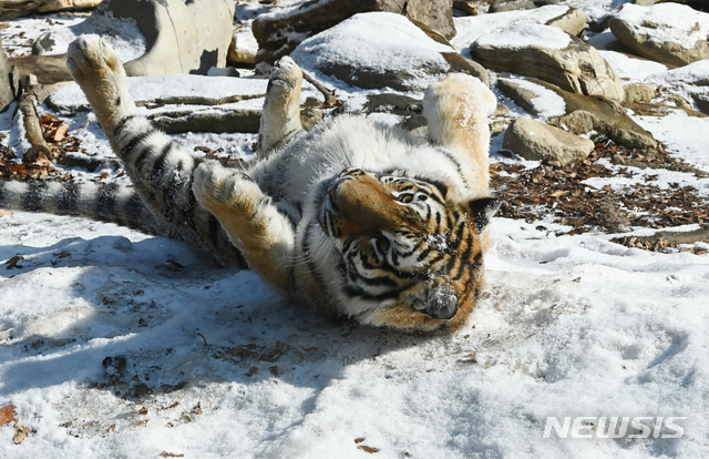 二十四節気の始まりに当たる「立春」 の3日、京畿道竜仁のエバーランドにて、春の機運を感じつつ歩くチョウセントラの様子。