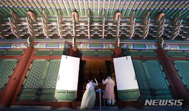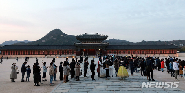 景福宮(ソウル市鍾路区)夜間開放初日に当たる1日午後、景福宮を訪れた市民たちが勤政殿を見て回った。文化財庁宮陵遺跡本部景福宮管理所によると、この日から5月31日までの期間中、45日間にわたり夜間開放が実施されるという。