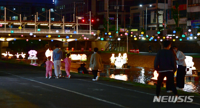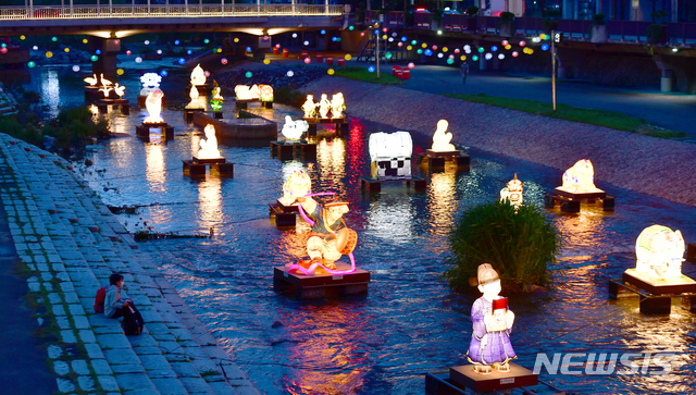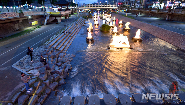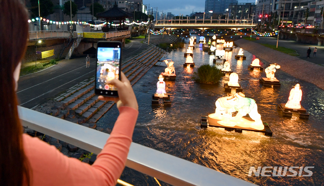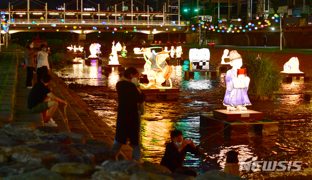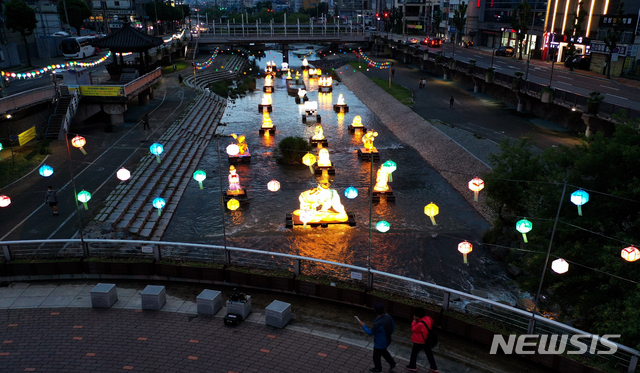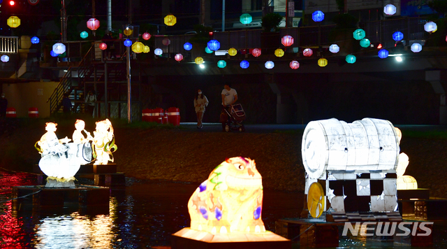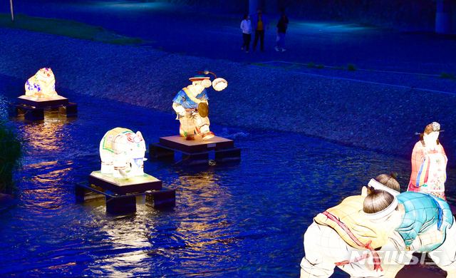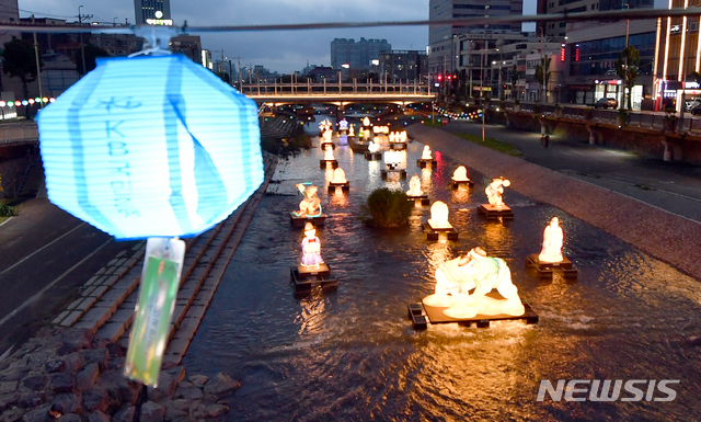 釈迦(しゃか)誕生日(旧暦4月8日、今年は5月19日)を二日後に控えた17日午後、光州市南区の光州公園前を流れる光州川で「ピッコウル(光のまち)観灯会伝統灯展示会」が開催された。伝統的な遊びを形状化した各種オブジェが設置され、市民たちが足を止めてこれらを眺めていた。