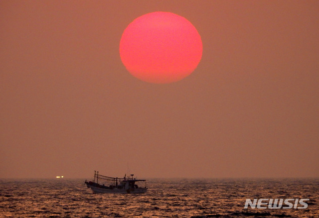 二十四節気の一つ「芒種(ぼうしゅ)」に当たる5日午後、済州市梨湖洞の海辺から見た美しい日没。
