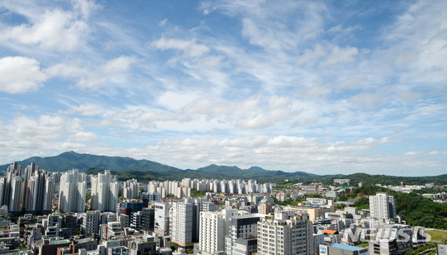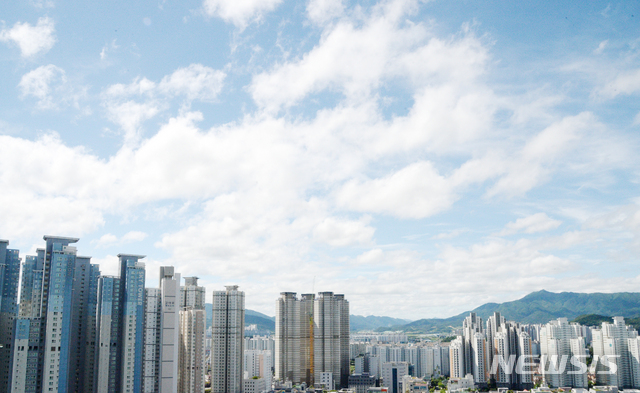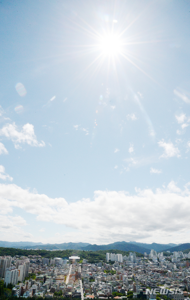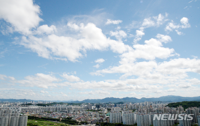 全羅北道全州市でPM2.5などの微小粒子状物質濃度がよい(低い)水準となり、晴天となった16日、全羅北道庁の屋上から眺めた空は青く、白い雲と調和をなしていた。