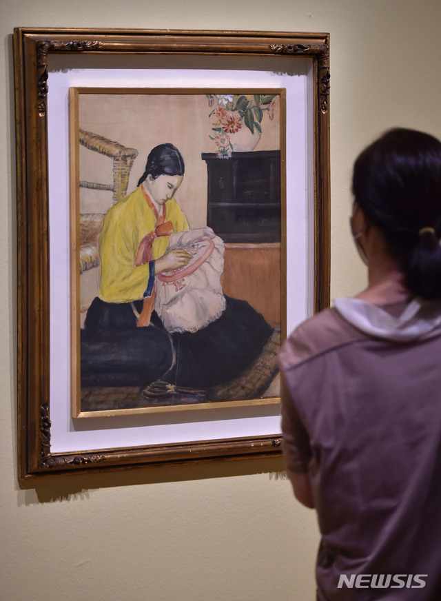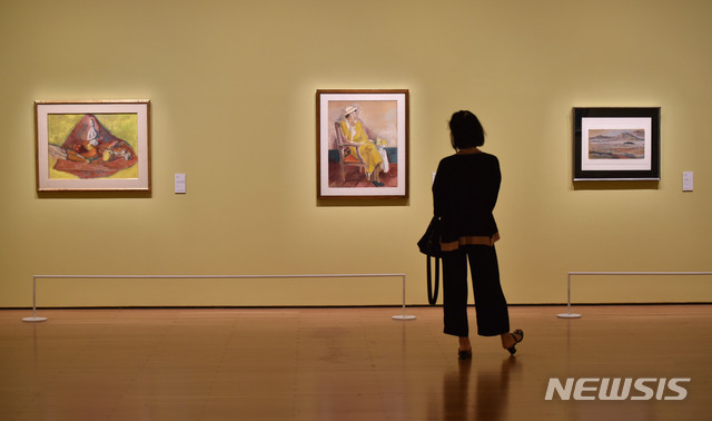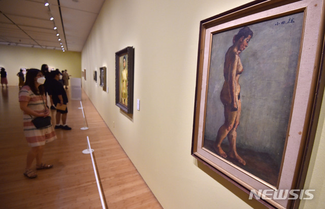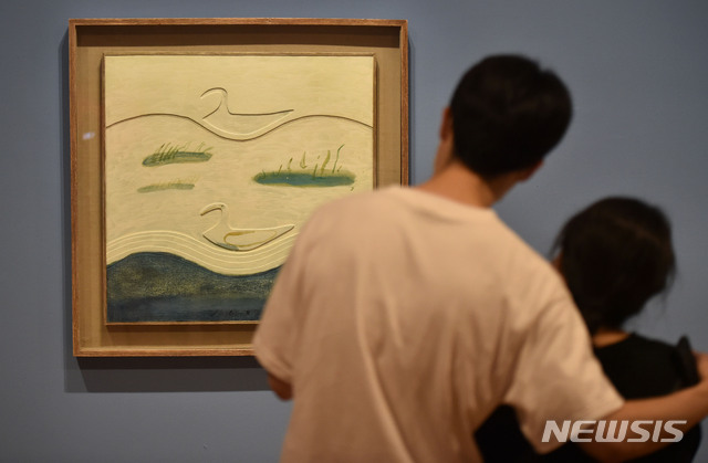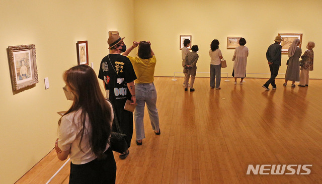 大邱美術館で開催の「李健熙(イ・ゴンヒ)コレクション」21点を紹介する特別展「ウェルカム・ホーム:饗宴」を訪れた観覧客が29日、作品を鑑賞していた。