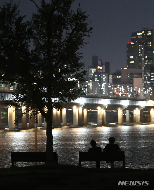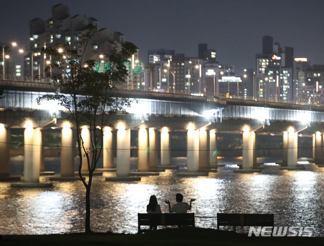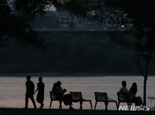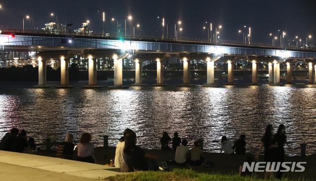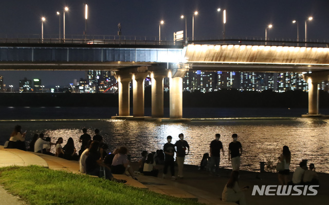 熱帯夜が数週間にわたり続いている中、ソウル市永登浦区の汝矣島漢江公園では4日午後、風に当たりながら涼む市民たちの姿が見られた。