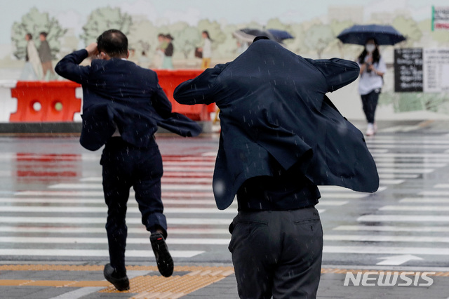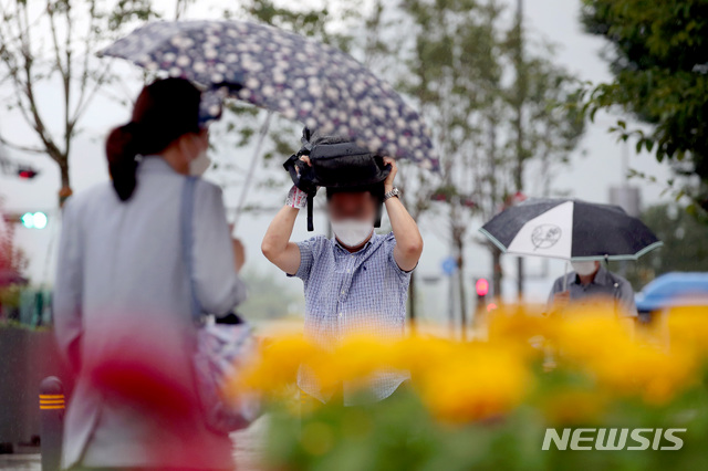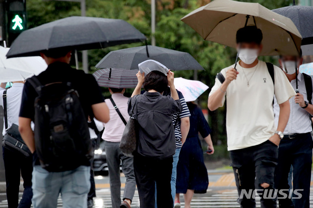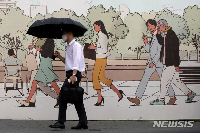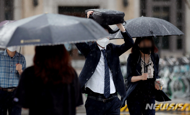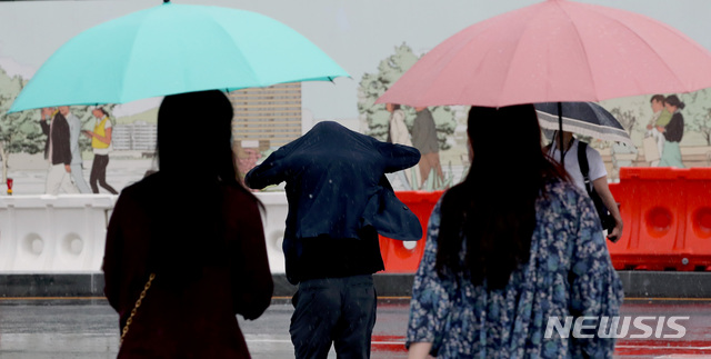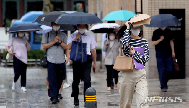 雨が降る中、ソウル市内では18日午前、多くの市民たちが雨を避けながら出勤していた。