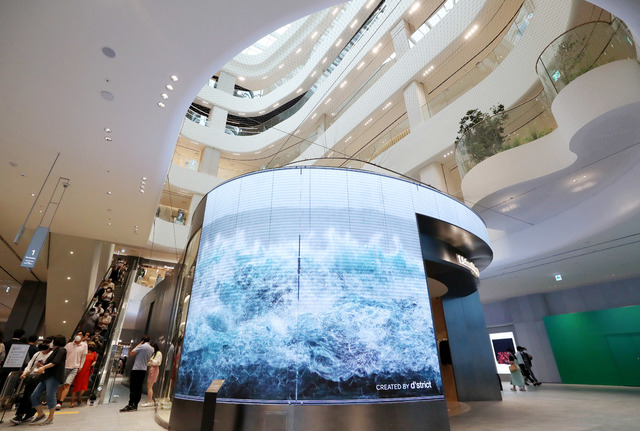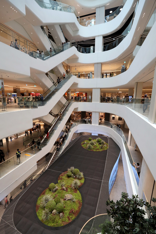 ロッテデパート7年ぶりの新規出店となる東灘店がオープンした20日午後、京畿道華城市のロッテデパート東灘店の各所には芸術作品が展示されていた。