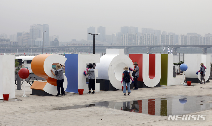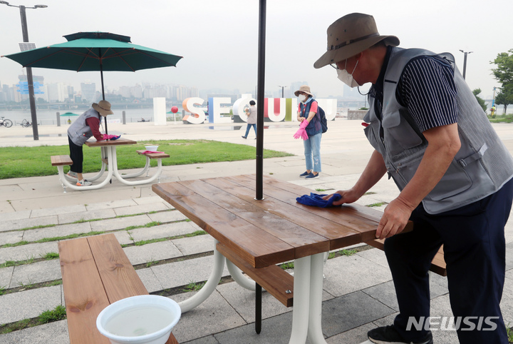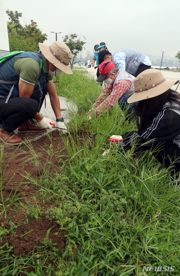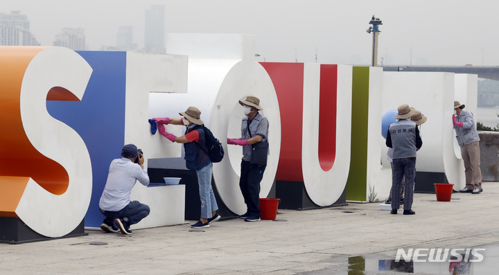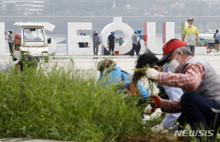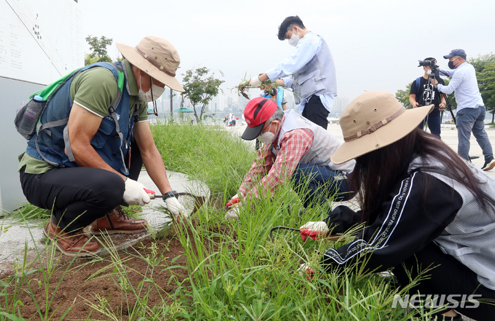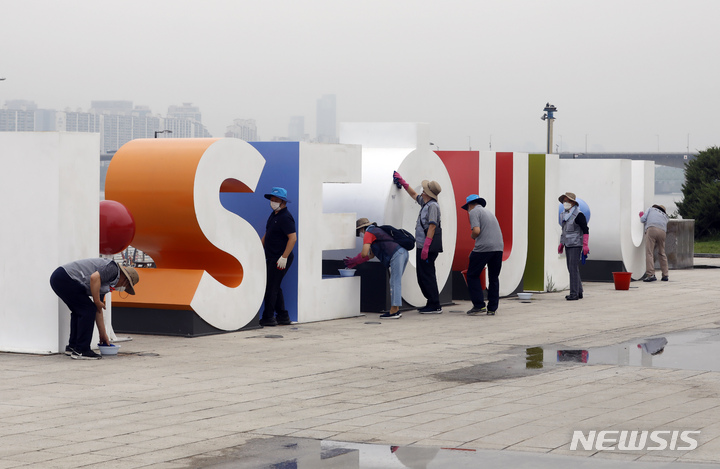 ボランティアメンバーたちが28日、ソウル市内の汝矣島漢江公園で、施設物の清掃および環境浄化活動を繰り広げた。