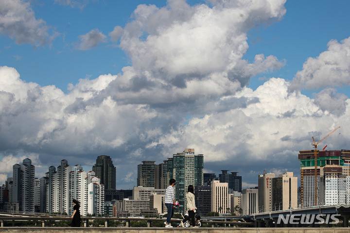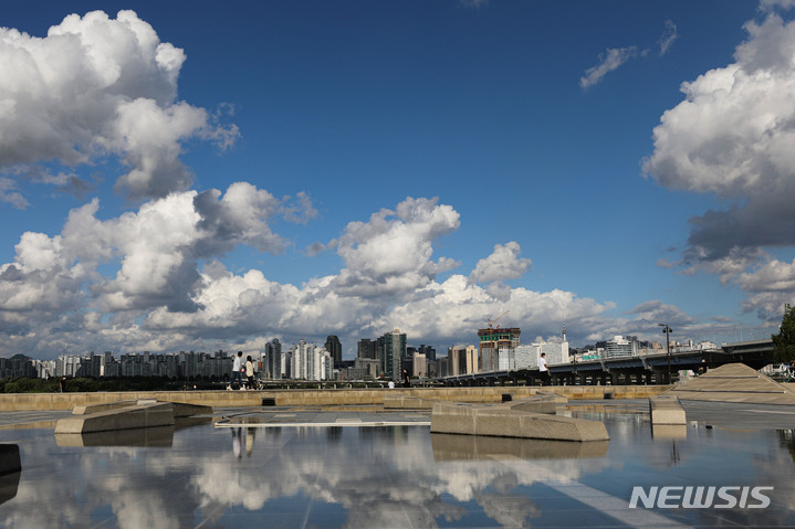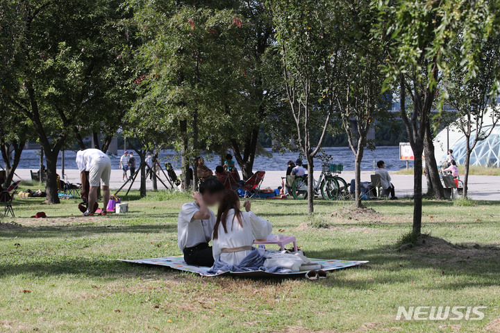 秋夕(中秋節。今年は9月21日)の連休最終日で秋分を翌日に控えた22日午後、ソウル市永登浦区汝矣島の漢江公園では、訪れた市民が休息を取っていた。
