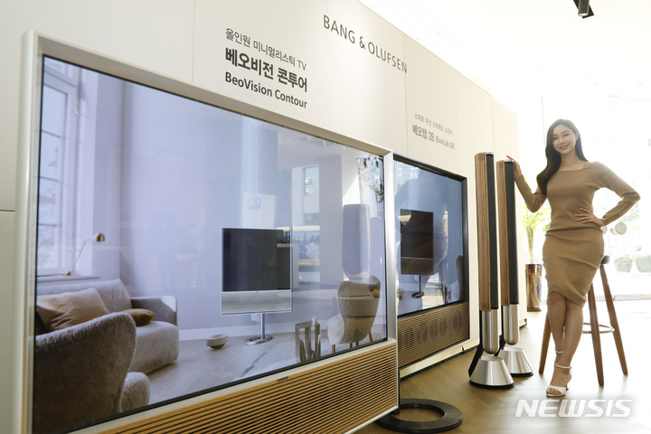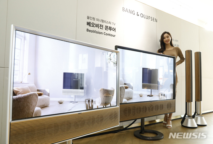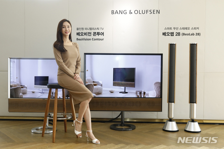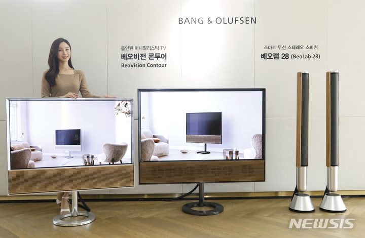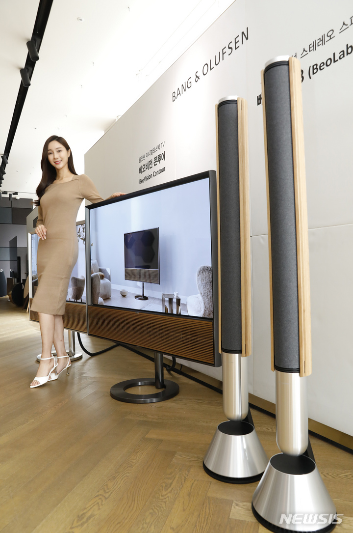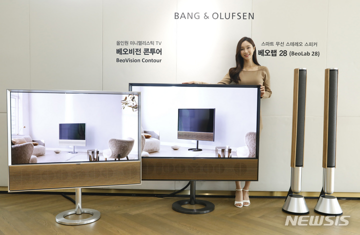 ホームエンターテインメントブランド「BANG&OLUFSEN」が19日、ソウル市狎鷗亭のフラッグシップストアで、オールインワン・ミニマリステックTV「BeoVision Contour」を先月発売したスマート無線スピーカー「BeoLab 28」と共にPRしているところ。BeoVision Contourは4K有機EL(OLED)ディスプレーにBeosound Stageスピーカーを備えたオールインワン有機ELテレビだ。コネクテッド・ステレオスピーカーのBeoLab 28はスリムなデザインで、1250ワットの強烈なサウンドとBeam Width Control、Active Room Compensation機能で、音の到達領域調節と部屋の環境を分析し、最高のサウンドを提供する。