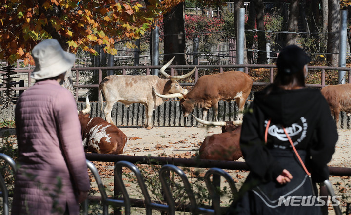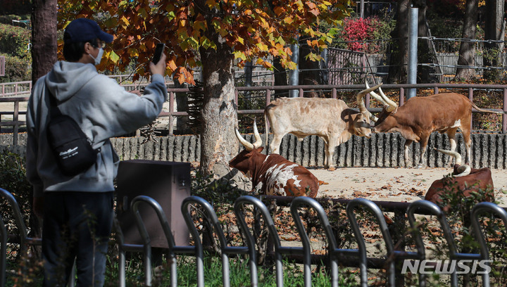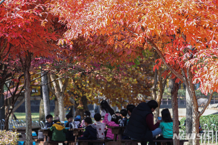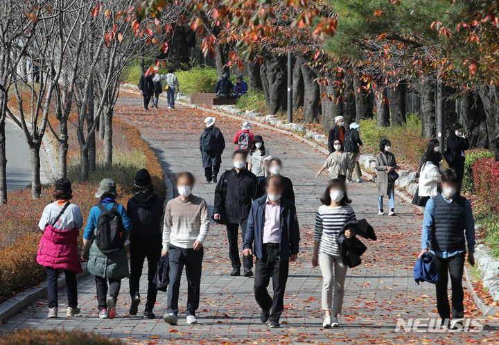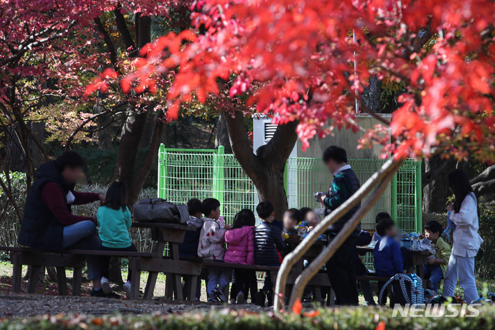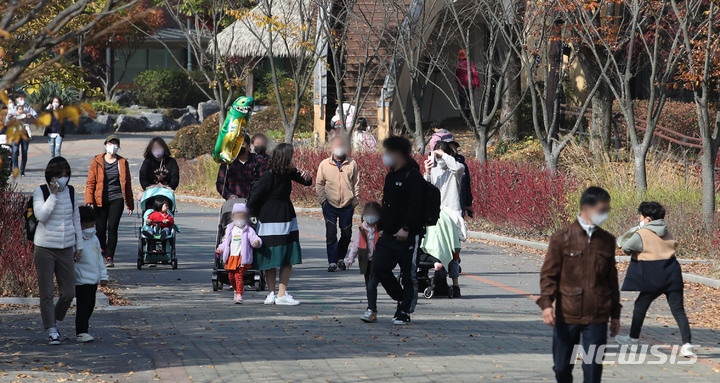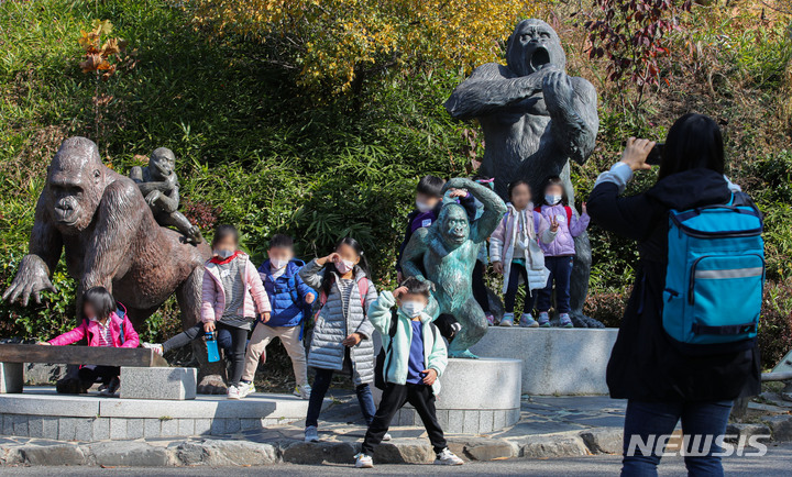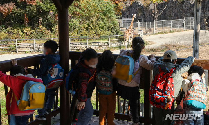 3日午後、京畿道果川市のソウル大公園を訪れた子どもたちが、秋の趣を満喫しているところ。ソウル大公園は「段階的日常回復」(ウィズコロナ)に合わせ、一日最大観覧者数を2万8000人から4万8000人に増やし、熱帯鳥類館・大動物館・植物園など室内展示館を8日から部分的に開放すると発表した。