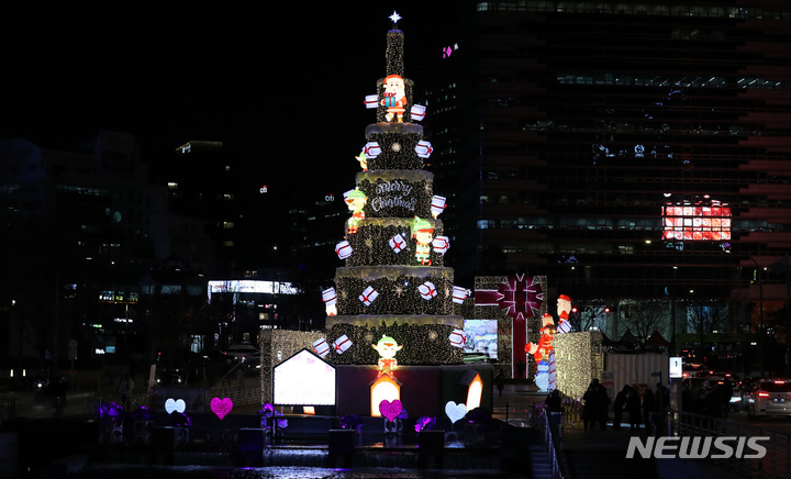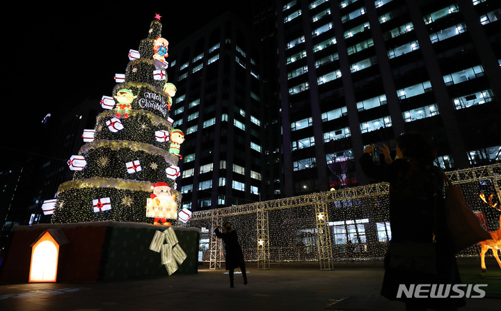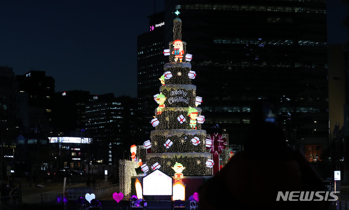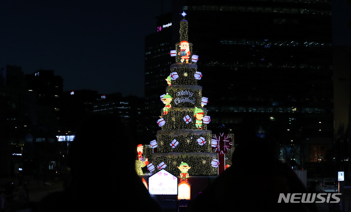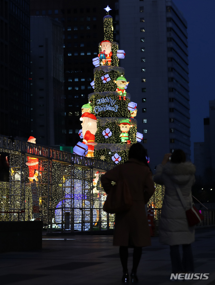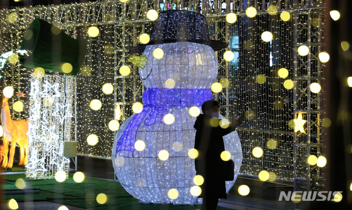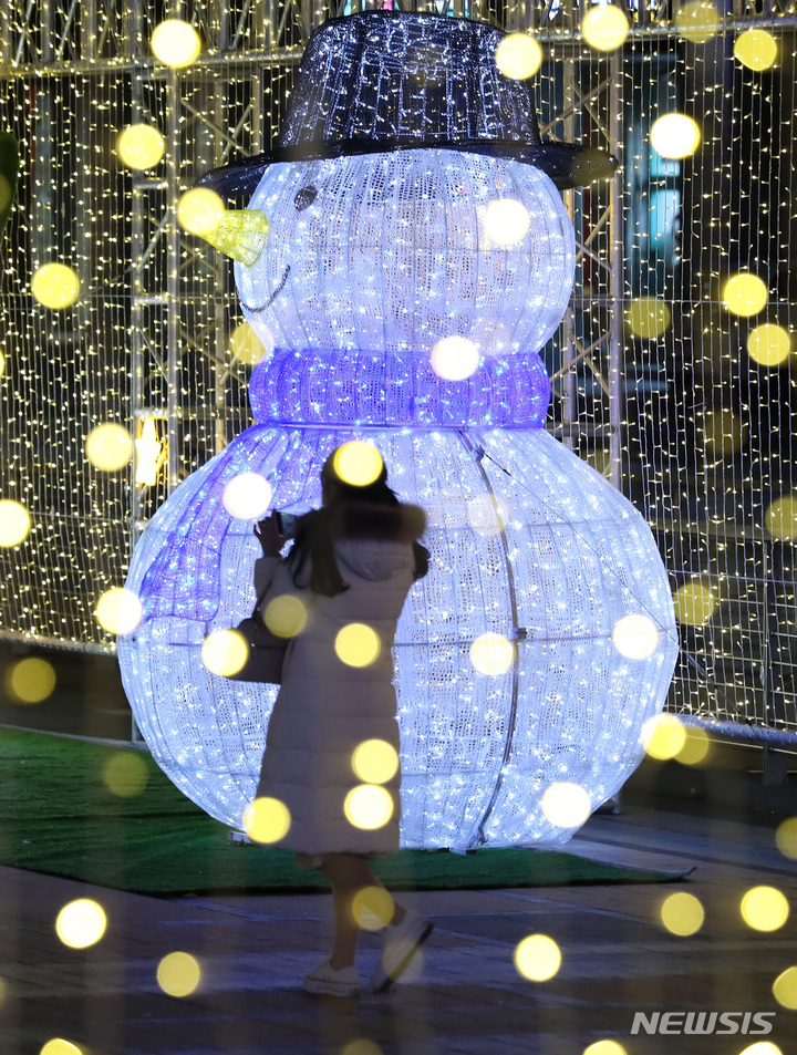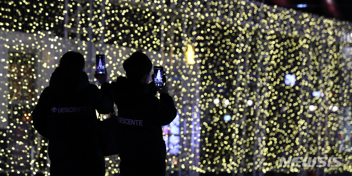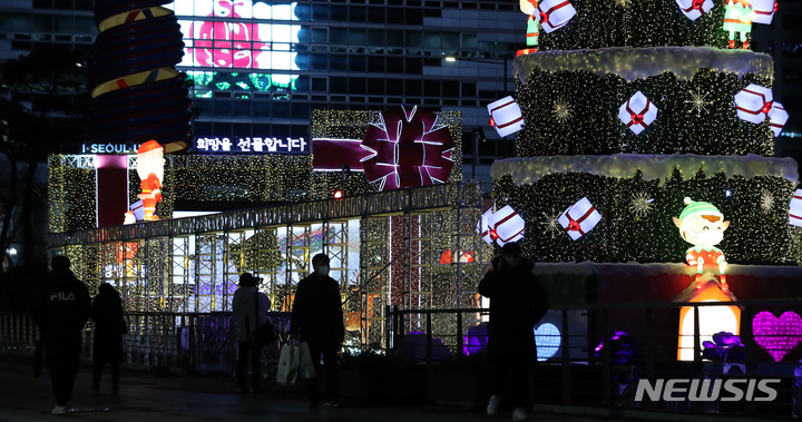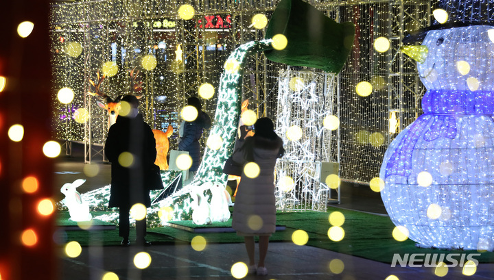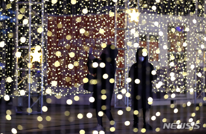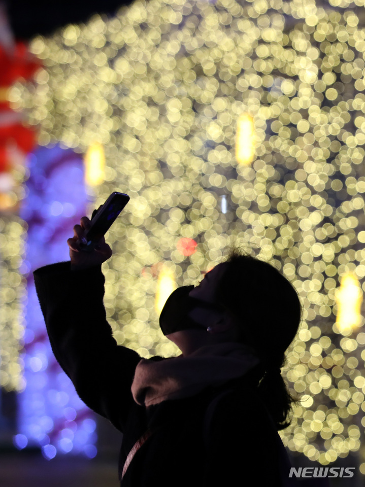 17日午後、ソウル市中区の清渓広場で開催された「2021年冬、清渓川の光」を訪れた市民たちが楽しいひとときを過ごしていた。