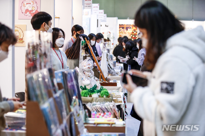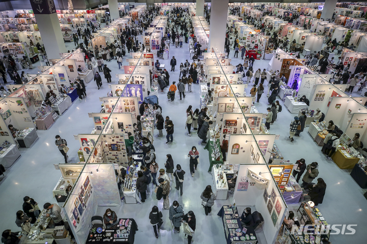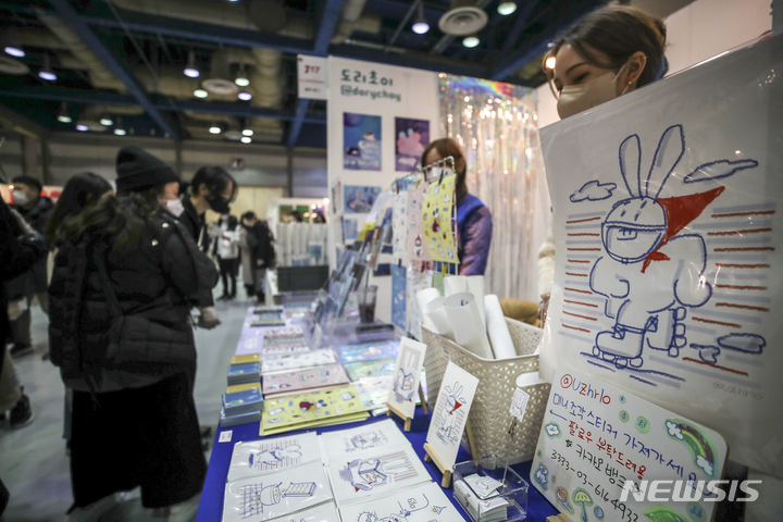 23日午前、ソウル市江南区のCOEXで開催されているソウル・イラストレーション・フェアV.12を訪れた観覧客たちが、各ブースでイラスト作品を見て回った。