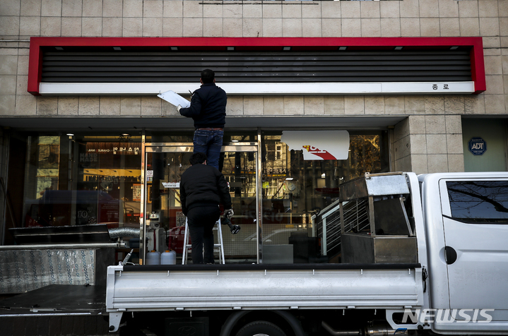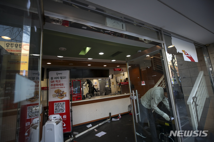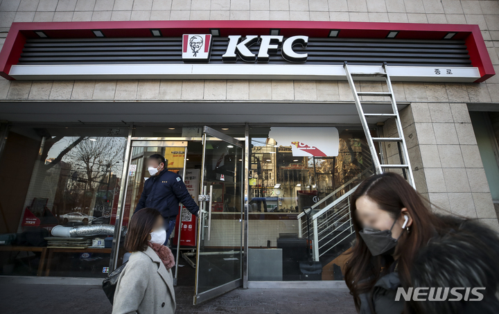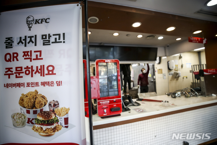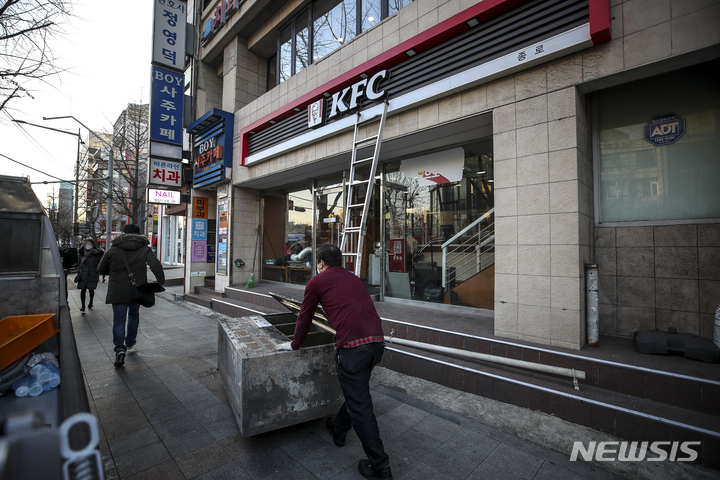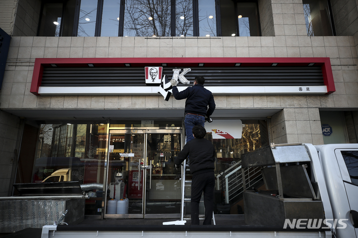 1984年4月に韓国国内で初めて登場したKFC1号店である鍾路店が、オープンから38年目にして営業を終了。写真は3日午前、ソウル市鍾路区のKFC鍾路店で撤去作業が実施されている様子。