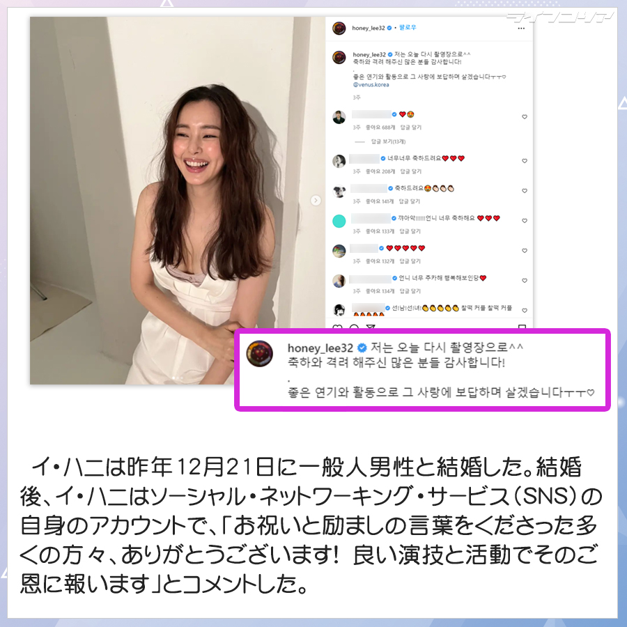 昨年12月結婚のイ・ハニ「妊娠4カ月目…今年6月出産予定」